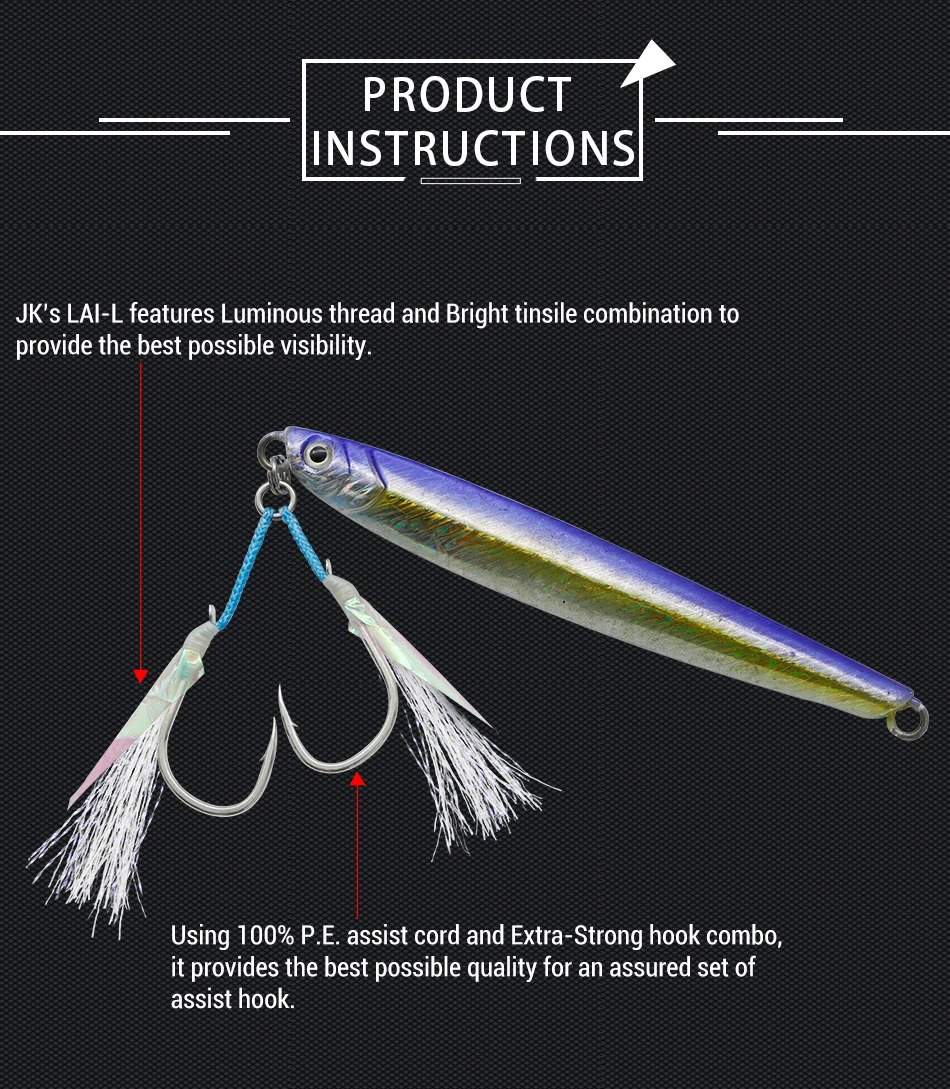 Светильник Janker Shore Jigging Assist (LAI) отлично подходит для тех случаев, когда вы хотите, чтобы небольшое количество дополнительной вспышки или свечения при вращении. Эти крючки отлично подходят для использования в домашних условиях, таких как snapper и grouper.