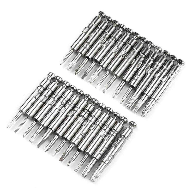2. Полные характеристики высокой точности рта, могут адаптироваться ко всем видам различных областей. Полный набор из 25 партий головок, может разбирать модель в основном брендовый компьютер, мобильный телефон, очки, часы. Использование высокоточного материала рта (S2) хромовой молибденовой стали, специальная Высокотемпературная Обработка (твердость HRC52-60).