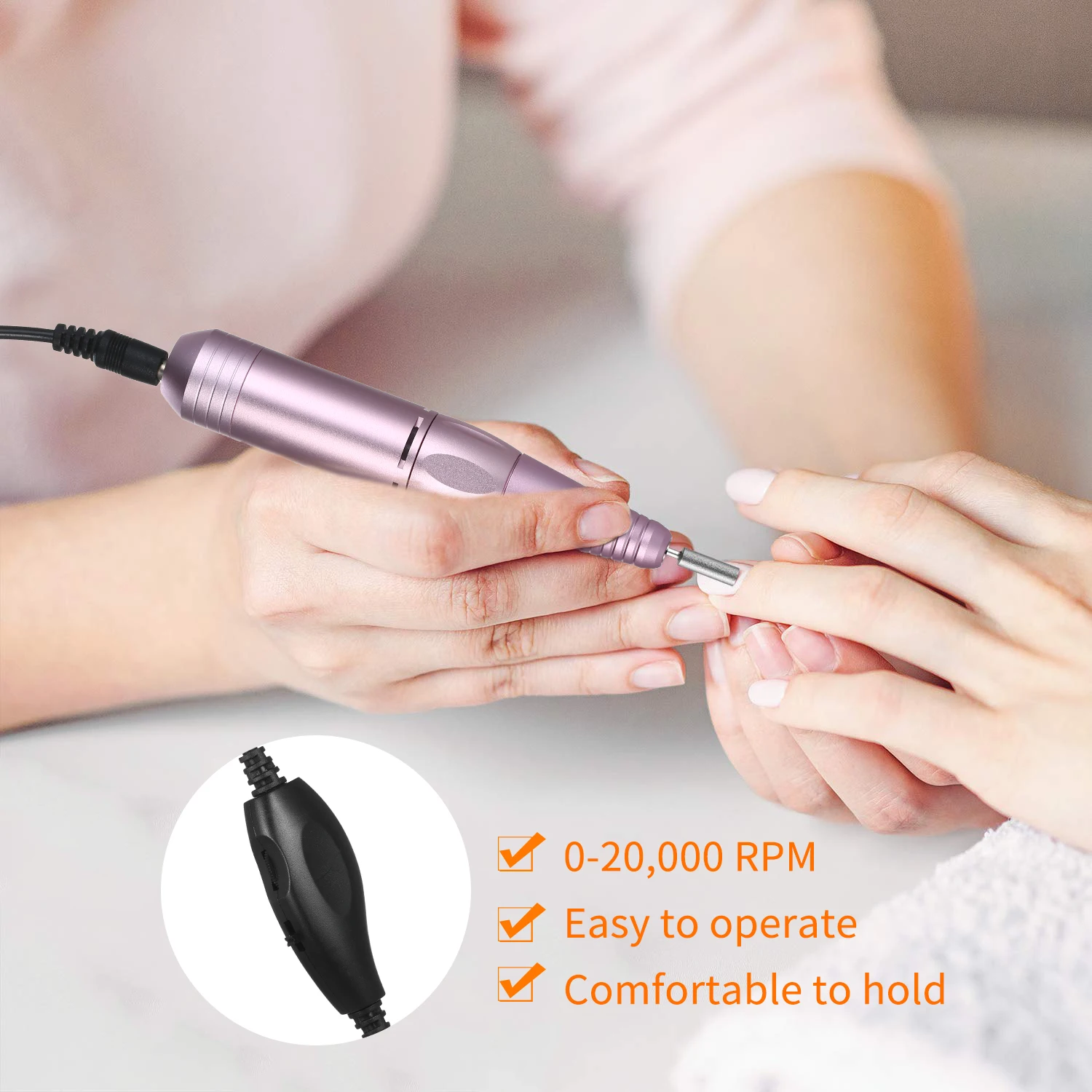 Легко управлять --- Поверните, чтобы изменить сверло, новичок также может выбрать его. Эргономичная захватывающая ручка, удобно держать, хорошо подходит для работы. Профессиональная машинка для сверления ногтей, подходит для профессионального использования в салонах или для семейного использования.