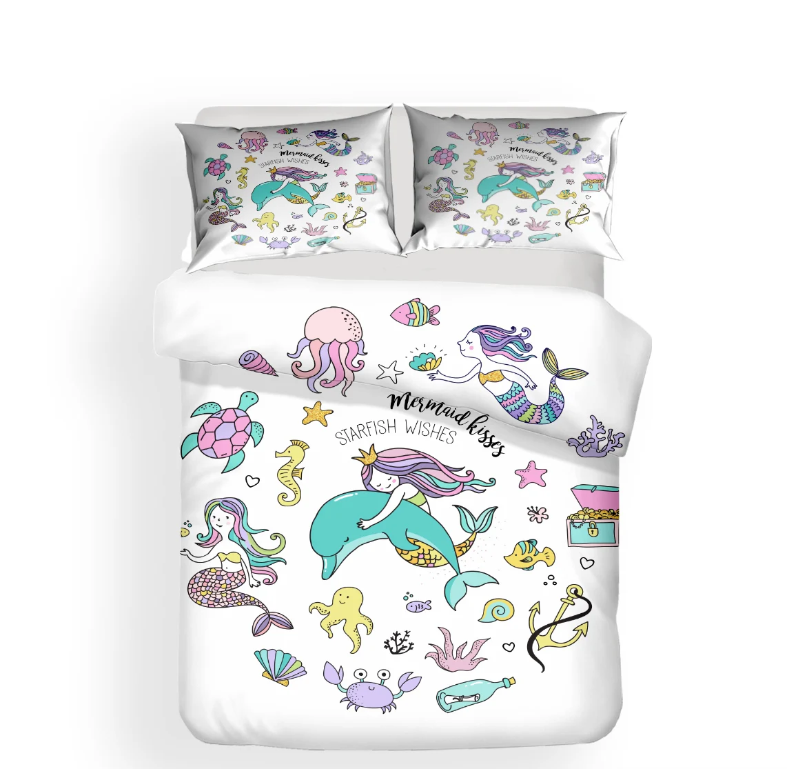 Домашний Комплект постельного белья с морским русалочкой для девочек, Комплект постельного белья с рисунком из мультфильма «Морская звезда», пододеяльник для детской комнаты