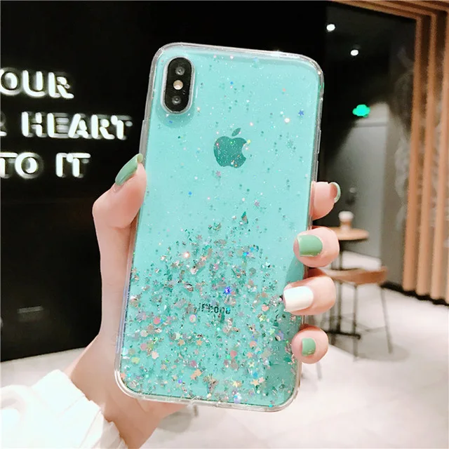 Блеск блестками и пайетками для маленьких девочек чехол для iphone 11 Pro X XR XS MAX 8 7 6 6s Plus Смола звезда прозрачный чехол из мягкого ТПУ с фактурой под песок
