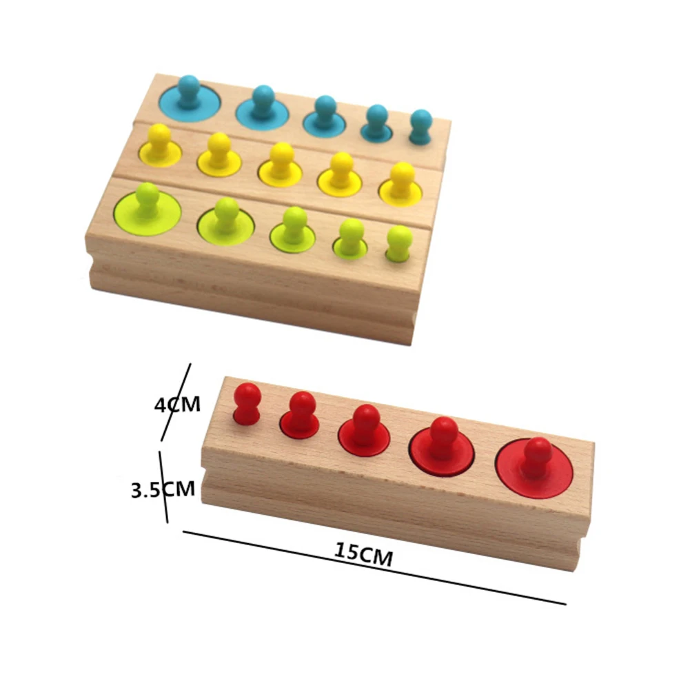 Конструктор цилиндрический разных размеров, дети должны подумать и наблюдать за тем, чтобы поместить его в правое отверстие под муфтой, что может развивать координацию рук и глаз ребенка и развивать мышления.
