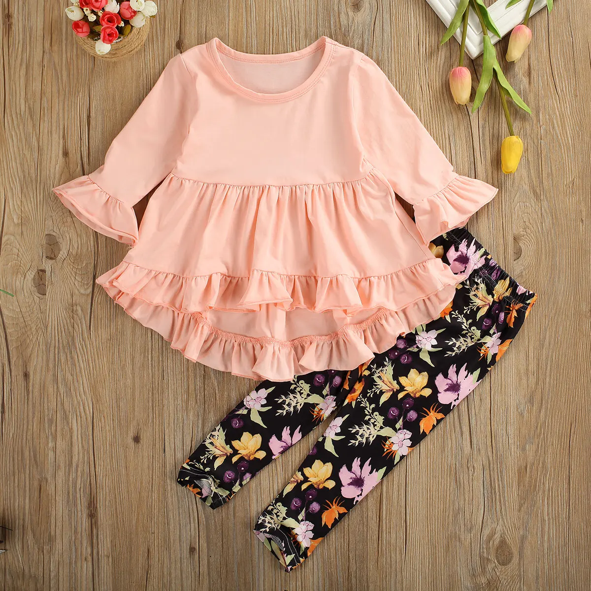 Добро пожаловать Высокое качество и абсолютно новый 100% Основной цвет: как на картинке Новинка в моде Материал: Смешанный хлопокПожалуйста, обратите внимание: если ваш ребенок пухленький, мы рекомендуем выбрать больший размер, спасибо. Просим перепроверять размеры детей, рост и полноту по размерной таблице перед покупкой/подачей заявки. Спасибо за понимание. Посылка включает в себя:1 юбка с оборками + 1 штаны с цветочным принтом Размеры таблицей: