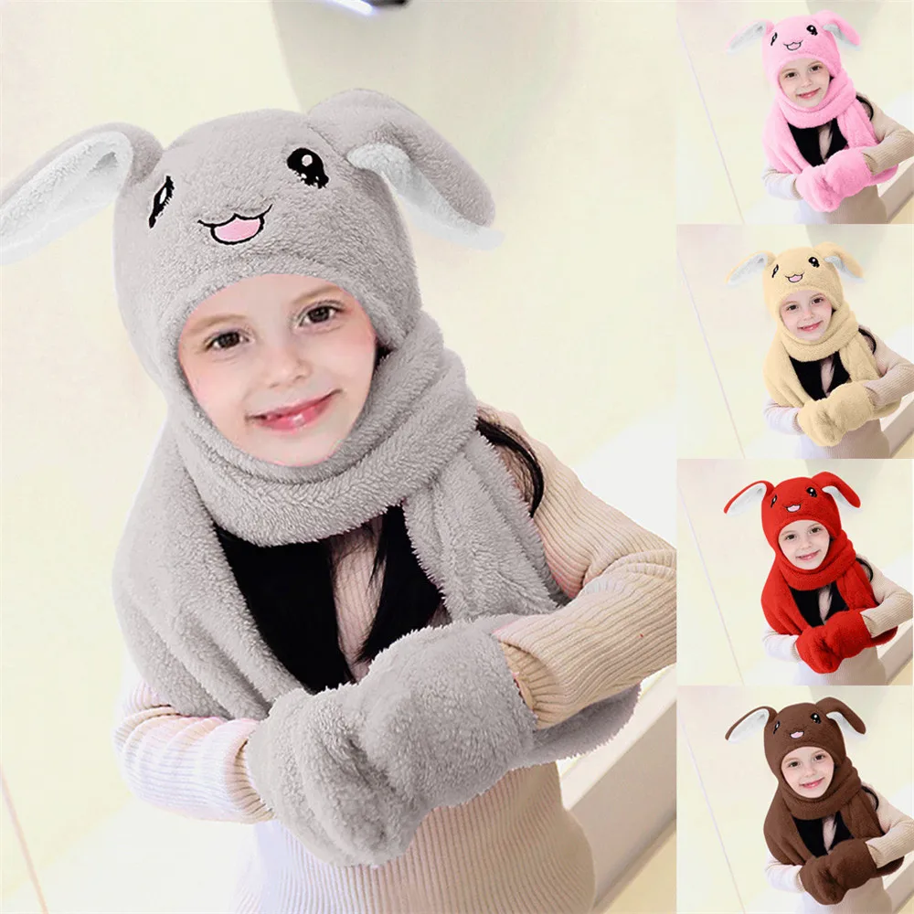 ARLONEET/Детские шапки для девочек и мальчиков, хиджаб, шарф, перчатки, комплект из 3 предметов, теплая шапка с заячьими ушками, Детские шапочки, Детские Зимние теплые шапки