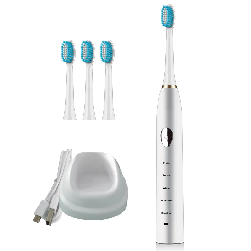 Электрическая зубная щетка Sonic Wave с зарядкой от USB, моющиеся отбеливающие электронные зубные щетки с 4 наконечниками