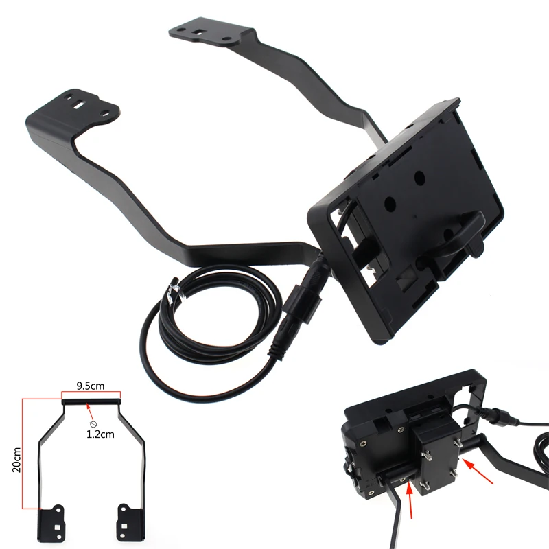 (1)product manual The functional handlebar bag, developed specifically for BMW, also provides a useful transparent PVC compartment for operating multimedia devices. Easy-to-open compartment with extra pockets and extra storage for pens, credit cards and more. The main compartment is locked with a waterproof zipper. In addition, the package has an E-Connect input (waterproof cable access) so the phone can be charged on the way. Integrated reinforcement, shock absorbing lining and complex 2 to 3 layer structure for greater stability Features Easy to install/disassemble Firm grip under all conditions Media slot for XL devices Such as iPhone 6s Plus, Samsung S6 edge + etc. The connection mechanism also makes it suitable for smaller devices. The device is still operational Waterproof cable access Additional brackets and pockets inside the cover Stable even when empty Waterproof and dustproof zip closure Padded and lined Carry Waterproof, fluorocarbon impregnated CORDURA fabric -Fluorocarbon impregnation and Teflon coating using nanotechnology for protection against moisture, dirt, oil and fading Washable and easy to clean (2) USB charging navigation bracket 100% brand new Function: 2 USB ports Material: ABS plastic and steel Suitable for mobile phone display: 4.0 inches to 6.3 inches Quantity: 1 mobile phone holder 1 pair of fixed boxes 1 external power cord 4 screws 1 3-in-1 USB cable