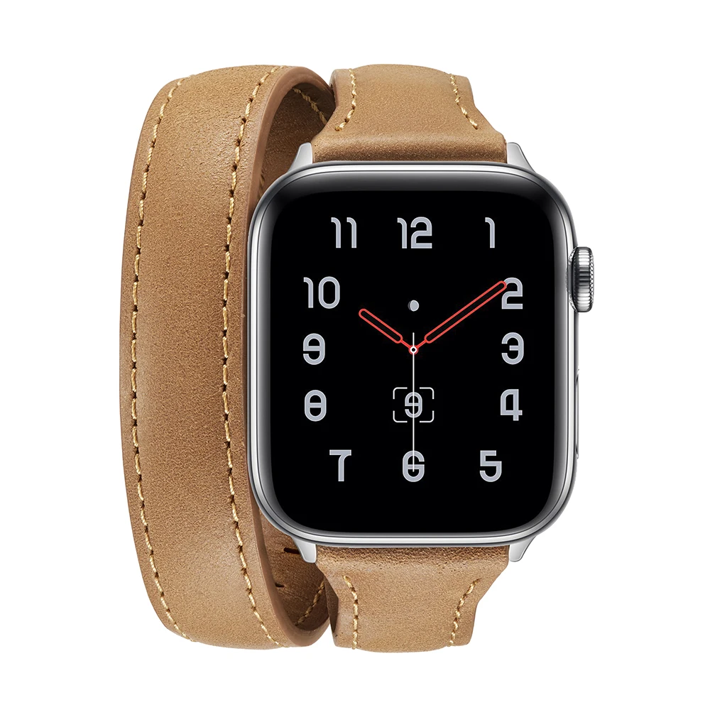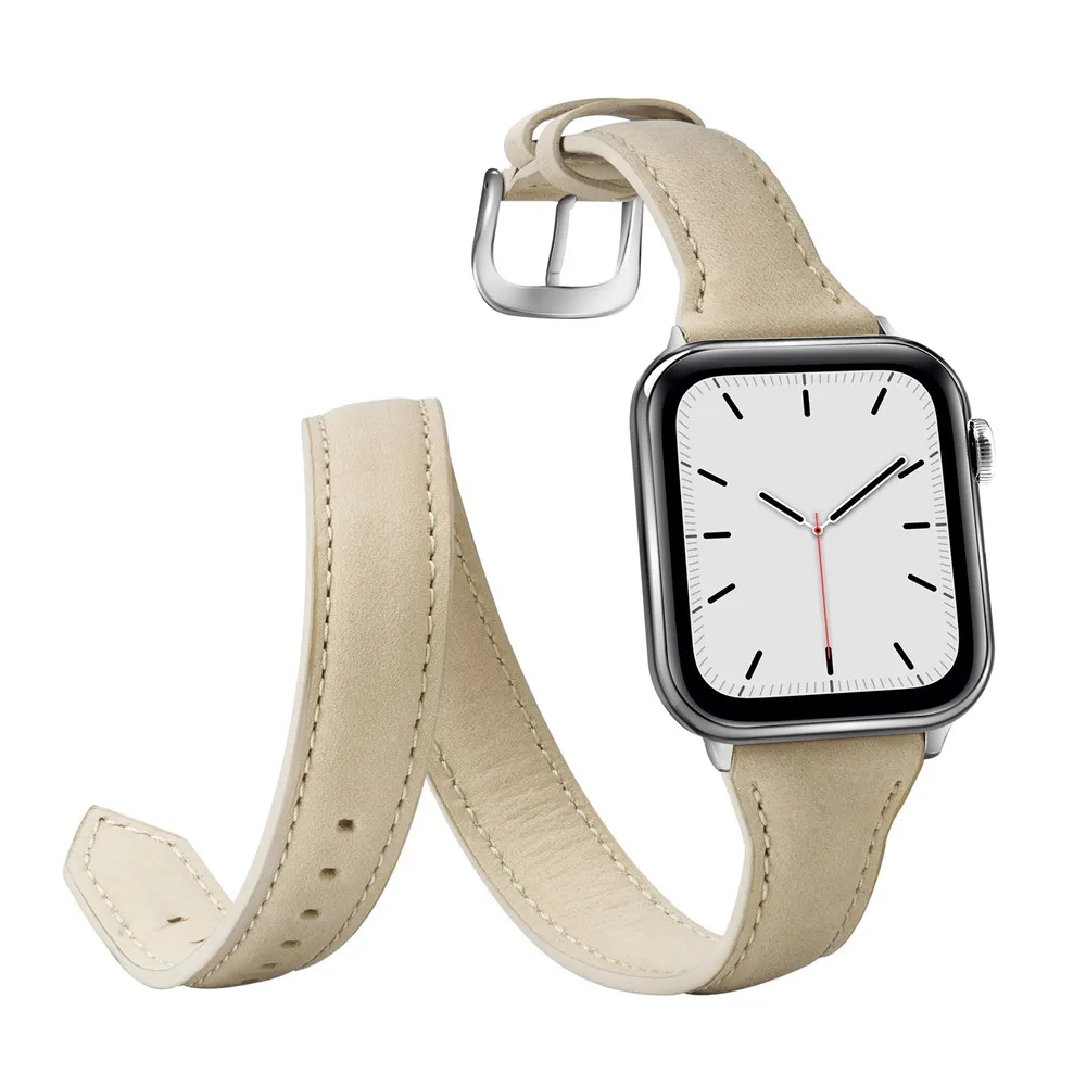 Двойной круглый ремешок для Apple Watch SE Band Series 6 5 4 3 2 тонкий браслет из натуральной кожи для iWatch 44 мм 40 мм 42 мм 38 мм