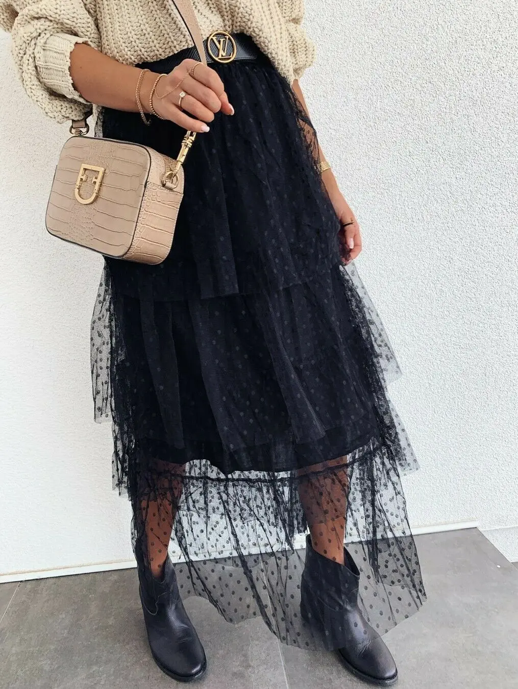 Корейская женская твидовая юбка Длинная Элегантная трапециевидная женские