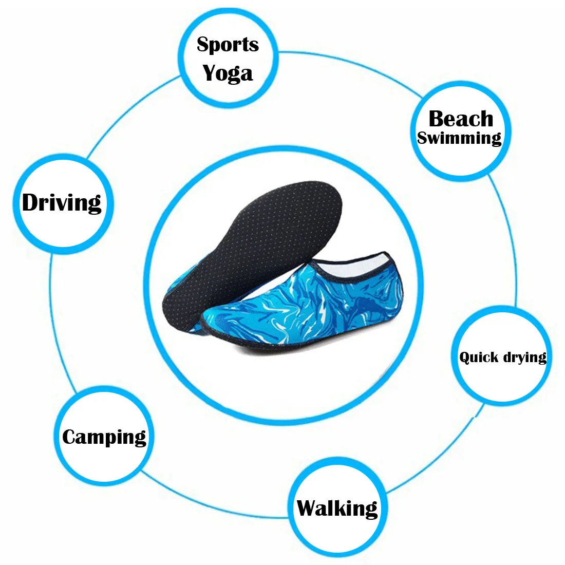 Особенности: -Нескользящая резиновая подошва и легкий вес. Наслаждайтесь комфортом в воде и на пляже. Отличное сцепление с любыми поверхностями и Защита ног. -Эластичный воротник для быстрого и легкого входа, защищая ваши ноги от капель. -Идеально подходит для занятий спортом в помещении и на открытом воздухе, таких как йога, дайвинг, тренировка веса, рафтинг, парусный спорт, езда на велосипеде и бег, прогулка, рыбалка, пляжный волейбол и многое другое! Отлично работает при использовании воды или в воде. -Мягкие и легкие, как носки. Легко носить, снимать, стирать и быстро сушить.