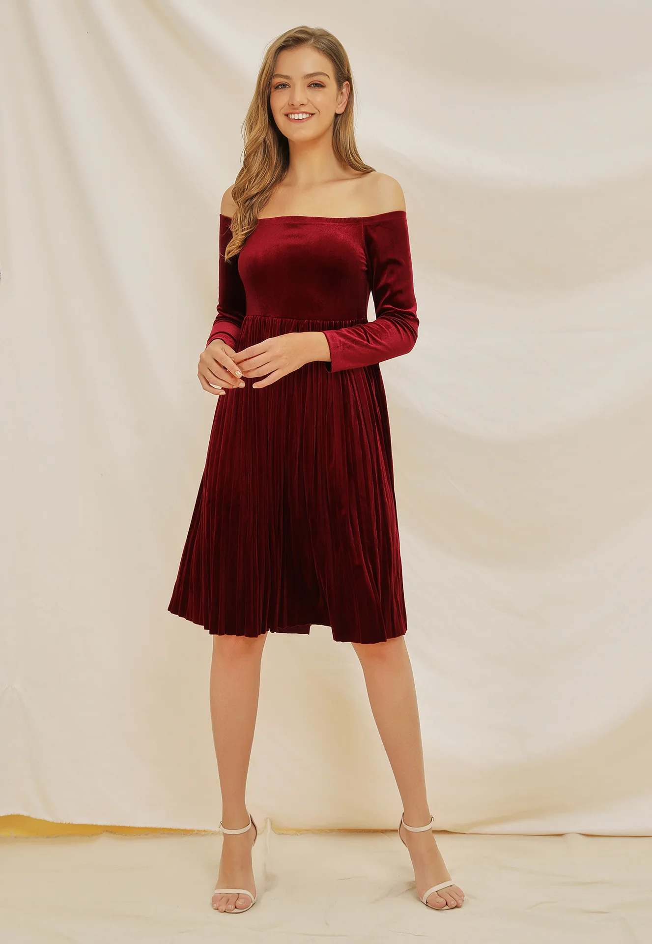 Осенне-зимние Элегантные Бархатные вечерние платья, женское сексуальное мини-платье с длинным рукавом и вырезом лодочкой, винтажное теплое ТРАПЕЦИЕВИДНОЕ женское платье