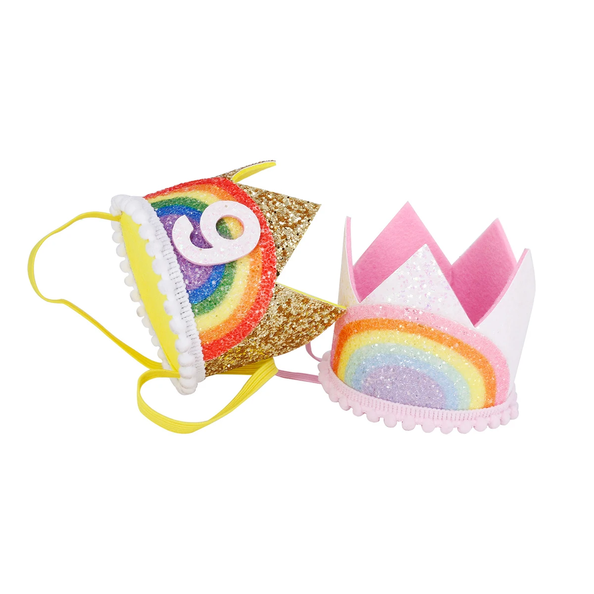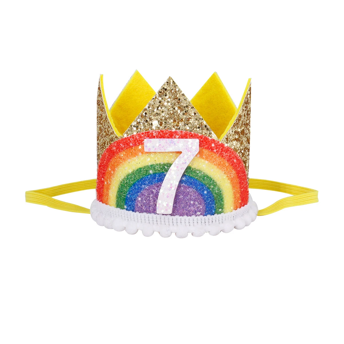 1 шт., радужные шляпы для дня рождения, декоративная Кепка принцессы, Цветочная корона, От 1 до 10 лет, повязка на голову для дня рождения, украшения, Детская повязка на голову