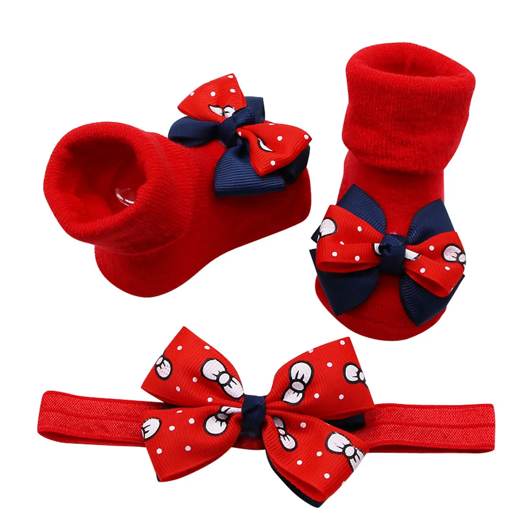 Детские носки для малышей + 1 шт., нескользящие носки с ремнем для волос для маленьких девочек
