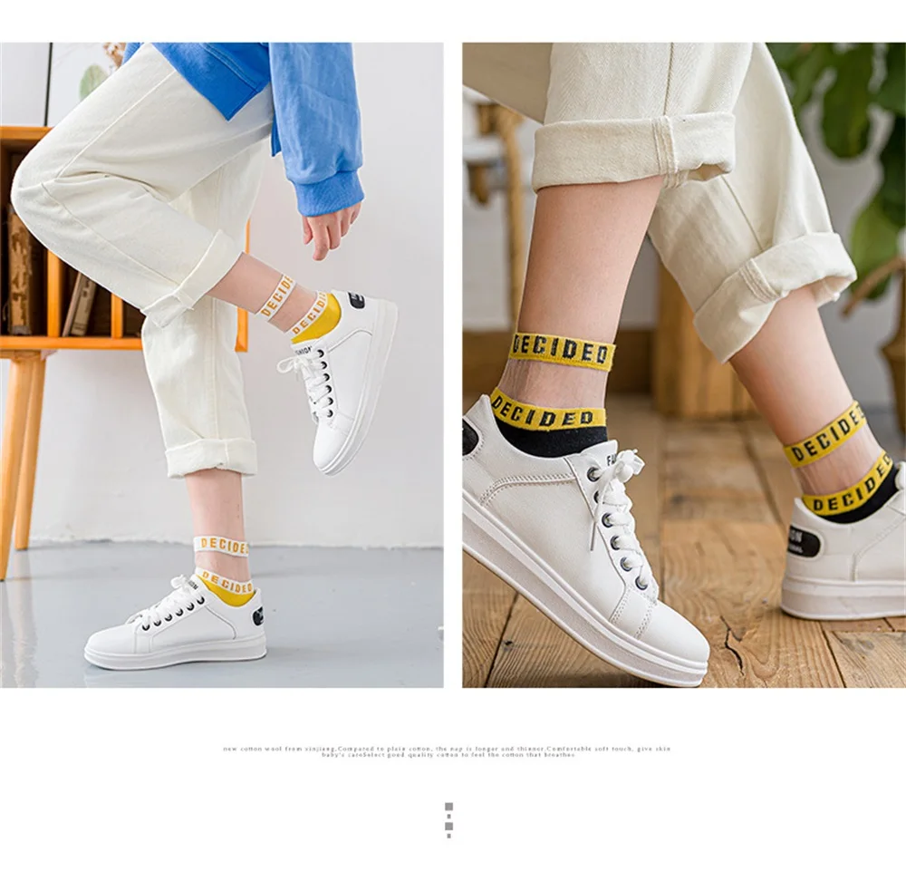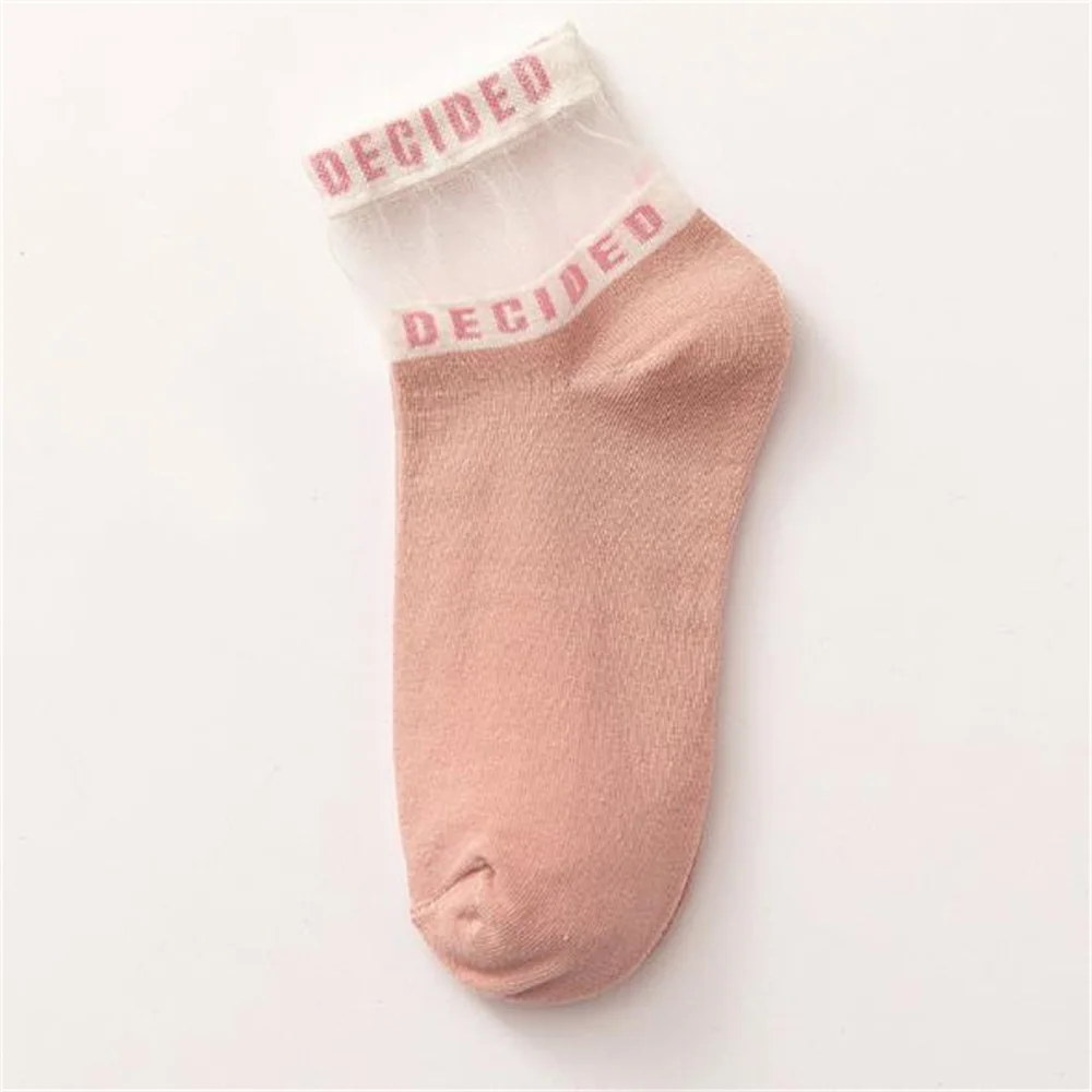 Женские хлопковые носки, модные сетчатые носки с буквенным принтом, короткие носки для девушек