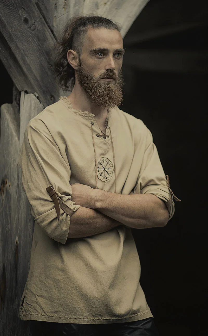 Средневековый Viking пирата белье топ футболка костюм в стиле Ренессанс мужские