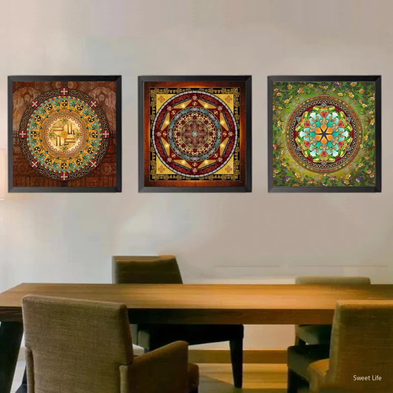 Современное искусство, мандала, цветочный орнамент, Картина на холсте, буддийская религиозная винтажная печать, плакат, произведение искусства, Скандинавская гостиная, домашний декор