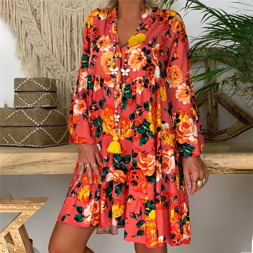Женское свободное мини-платье с рукавом три четверти, летнее платье