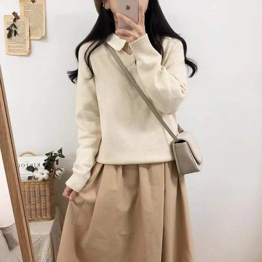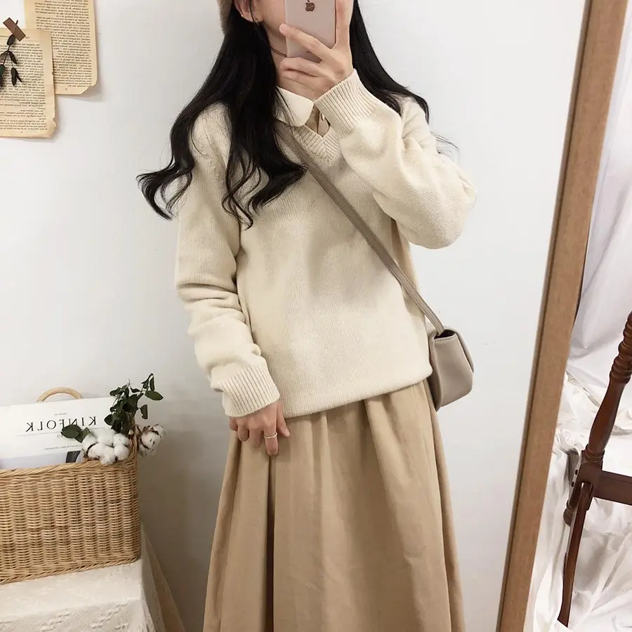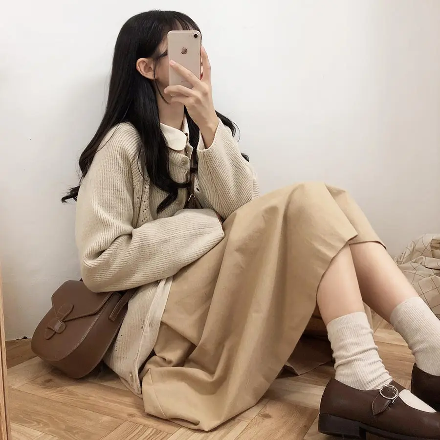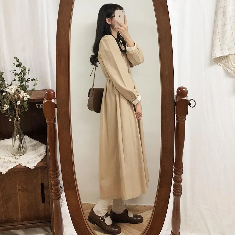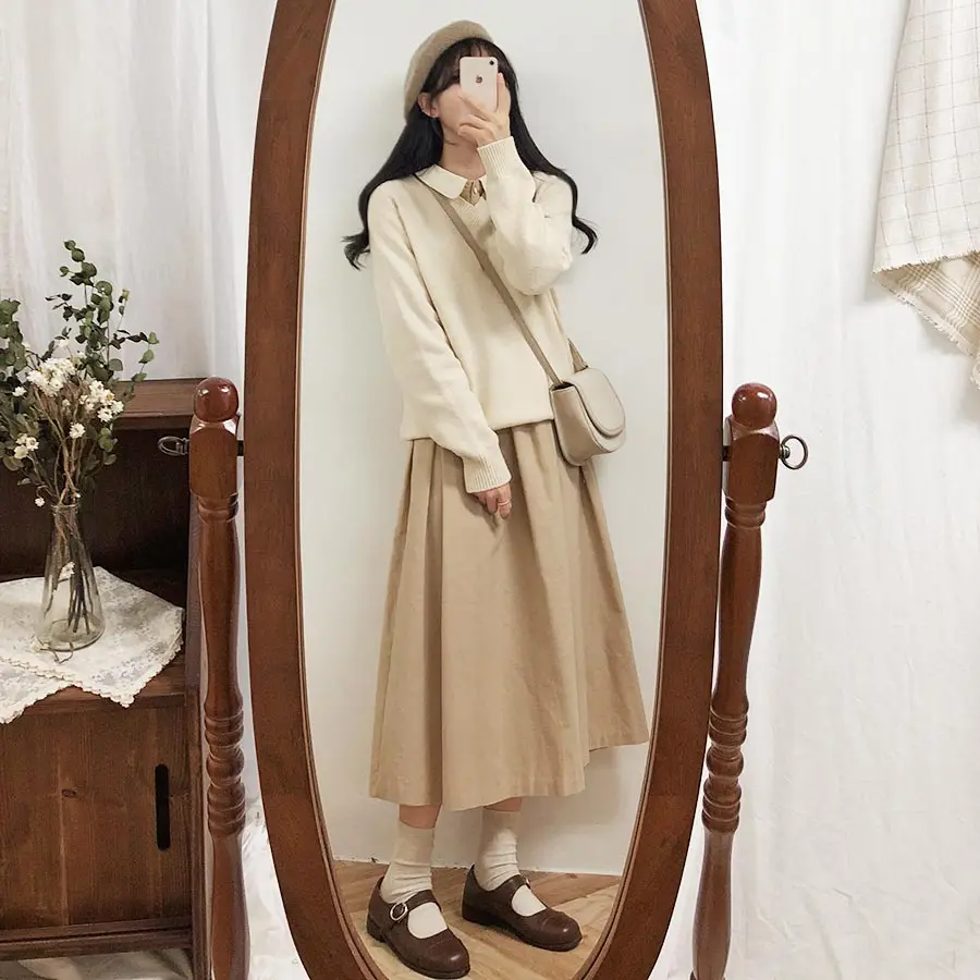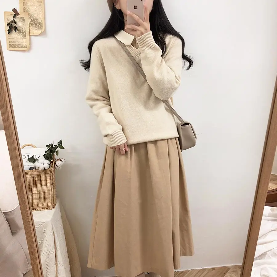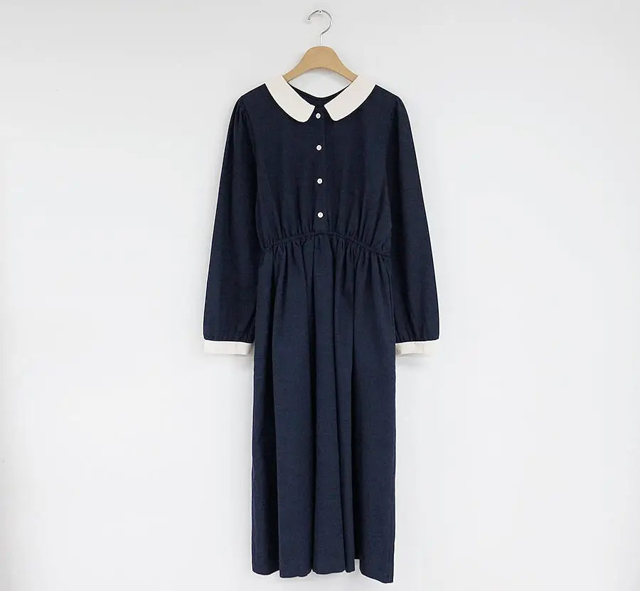 Зимние Базовые платья, длинные, Лидер продаж, корейский японский стиль, женское милое платье с длинным рукавом для девушек в стиле преппи с белым воротником, ТРАПЕЦИЕВИДНОЕ винтажное платье