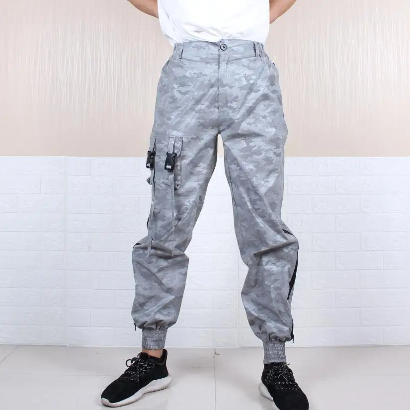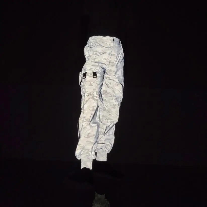 Женские/мужские светоотражающие легкие брюки-карго, флэш-камуфляж, ночные джоггеры, хип-хоп, рок-вечеринка, мешковатые брюки, боковая длинная молния, пэчворк, сетка, плюс размер, Свободные повседневные брюки