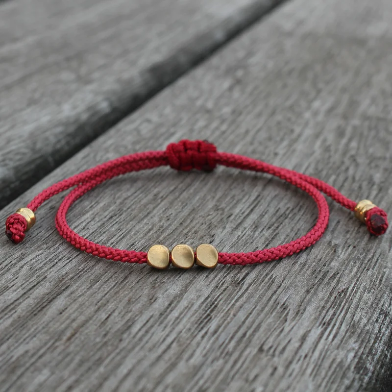 Модные простые регулируемые браслеты дружбы ручной работы тибетские медные бусы счастливая веревка браслет и браслеты для женщин и мужчин ювелирные изделия