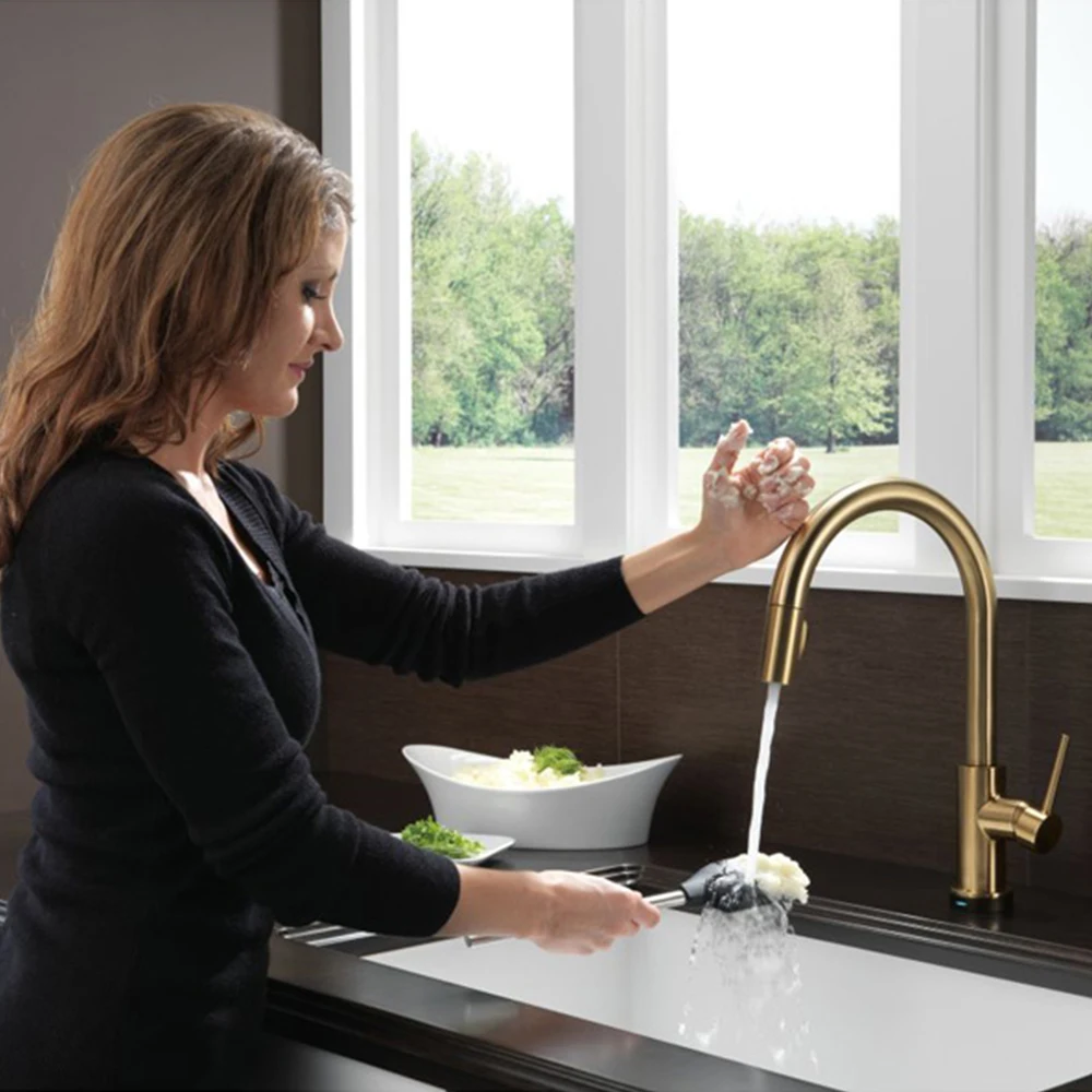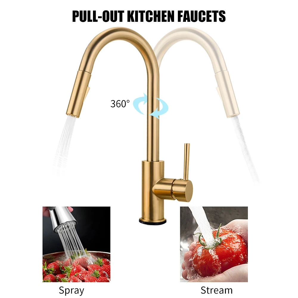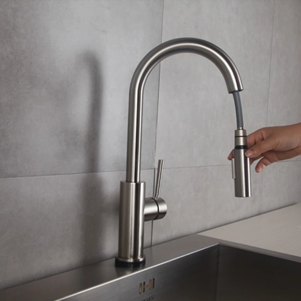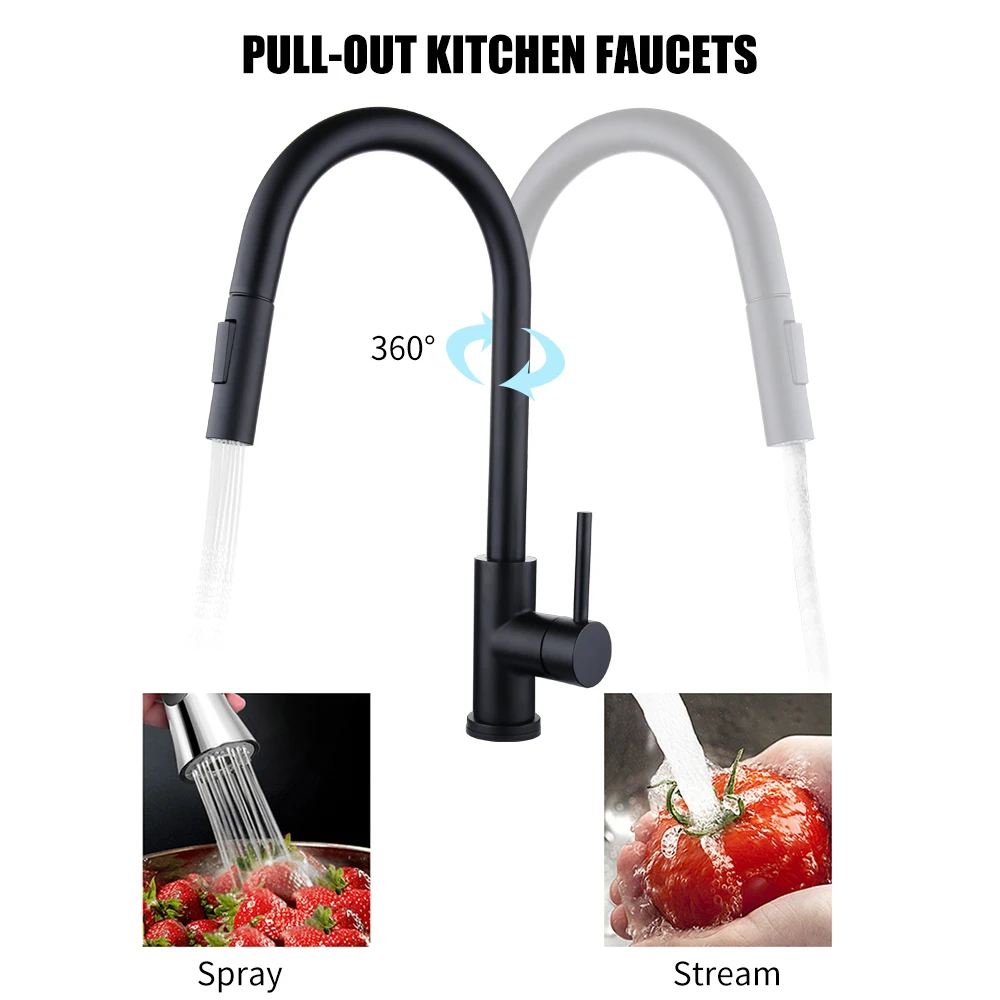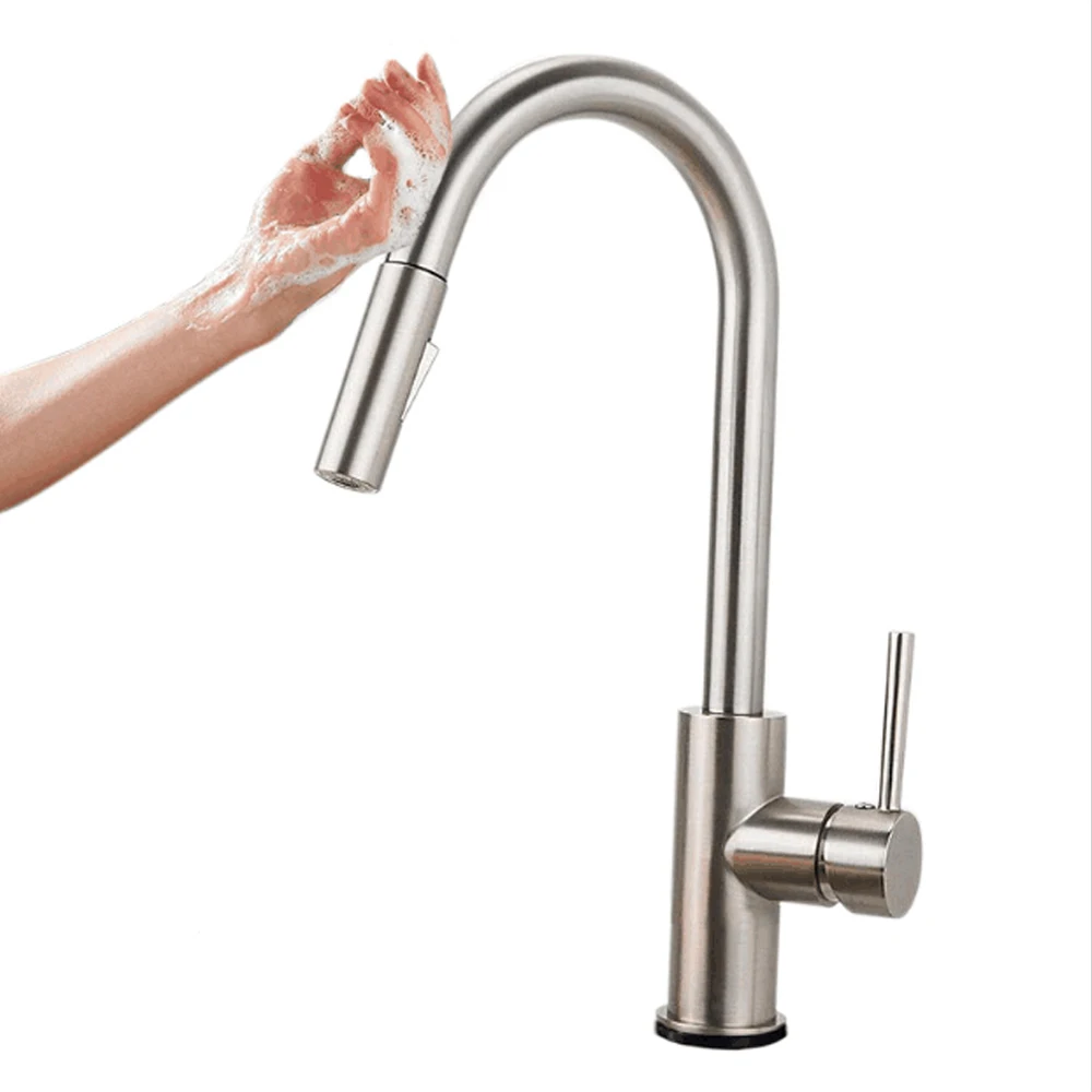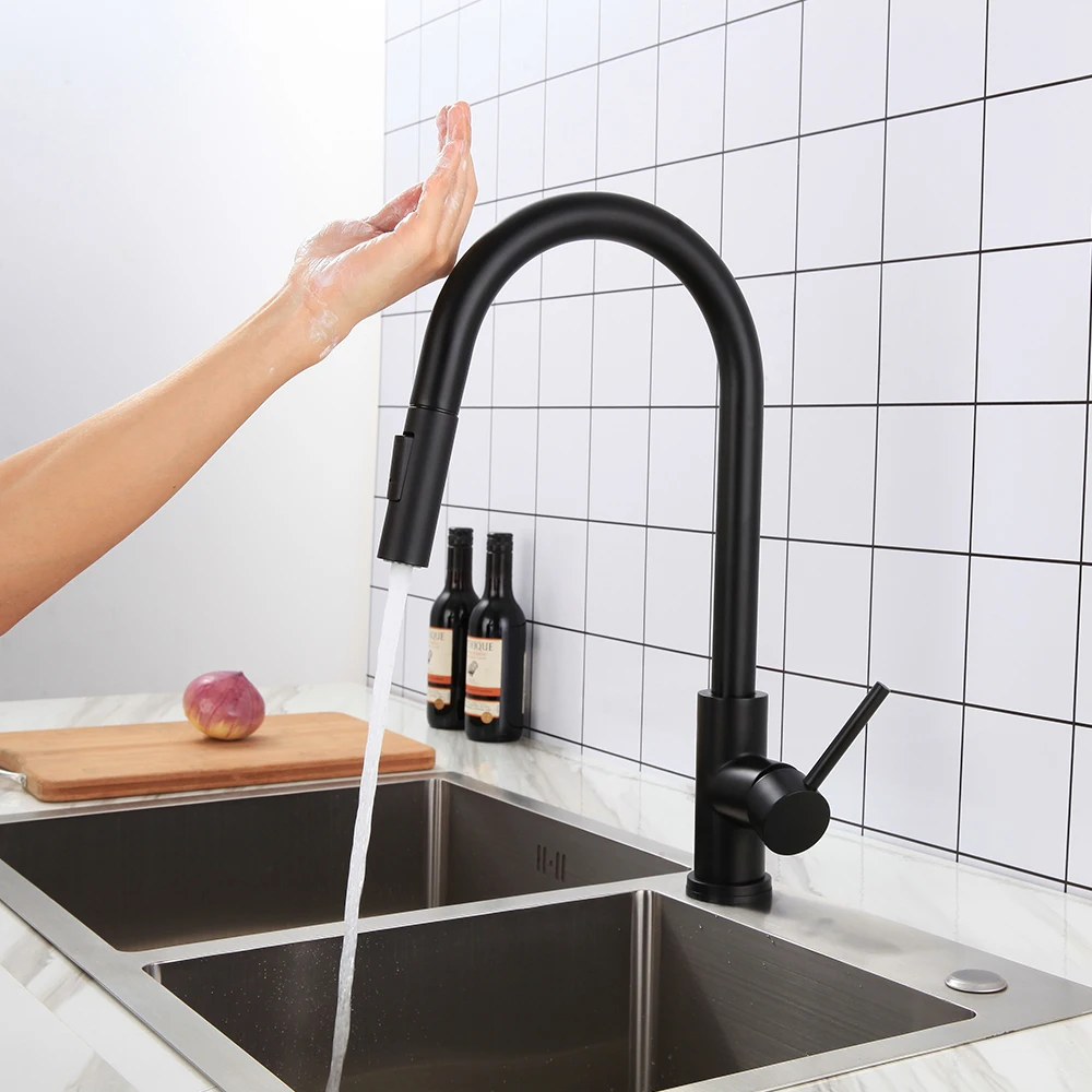 Простым прикосновением на Кухня Раковина кран с носик или тела запуска и остановки протекание воды. Вращающиеся смесители для кухонной раковины с удлиненным вытяжным шлангом 19 дюймов позволяют легко достигать всех зон вашей раковины. Смеситель для кухонной раковины с одной ручкой легко контролировать в горячей и холодной воде. Поверхность, покрытая черным, PVD или начесом, может противостоять отпечаткам пальцев и пятнам воды для более чистого образа.