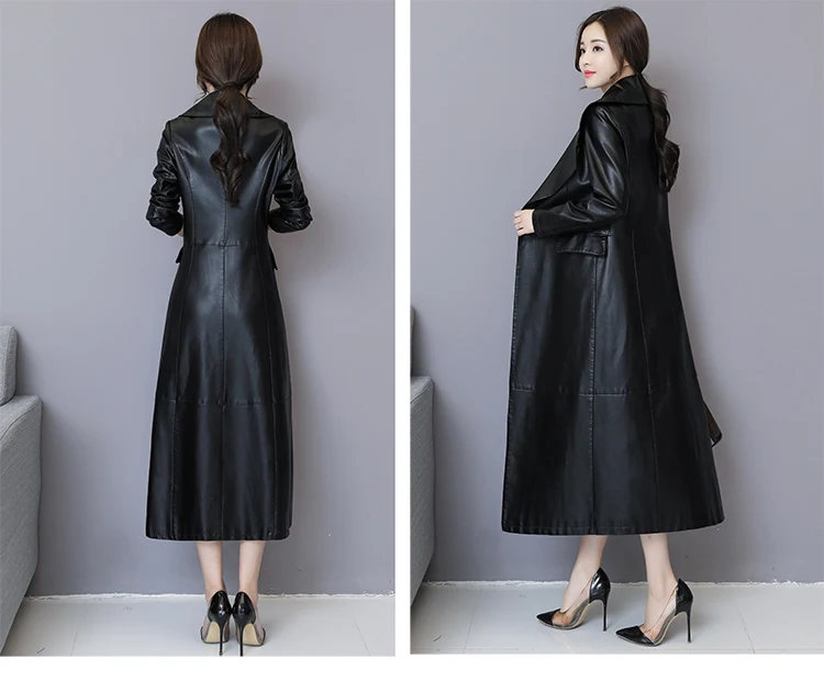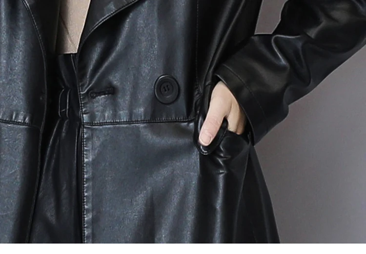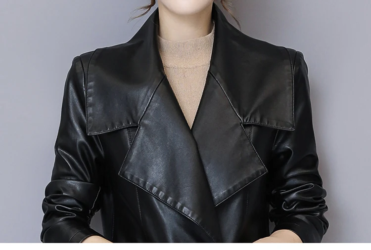 Кожаная куртка осень 2020 женская новая куртка из искусственной кожи мягкая кожаная куртка тонкая Длинная кожаная куртка с отворотом черная AQ193