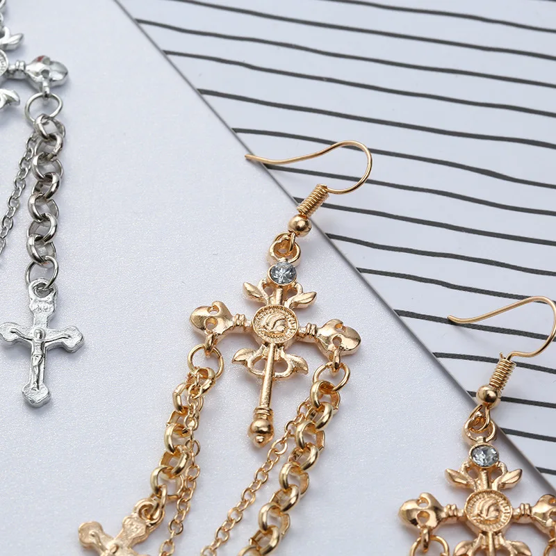 Design cross earrings 3 cross tassel pendant ladies punk fashion earrings bohemian long earrings 2019 European and American new