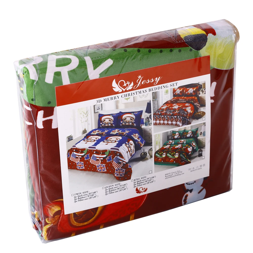 Комплект постельного белья включает пододеяльник, простыню и 2 наволочки. 50% материала-хлопок, который защищает кожу детей и обеспечивает мягкость рук. Комплект постельного белья входит в рождественскую тематику. С 3D рисунком на нем вы можете наслаждаться различными визуальными эффектами в разных ракурсах. Чего вы ждете? Выберите его, выберите уникальное теплое Рождество.