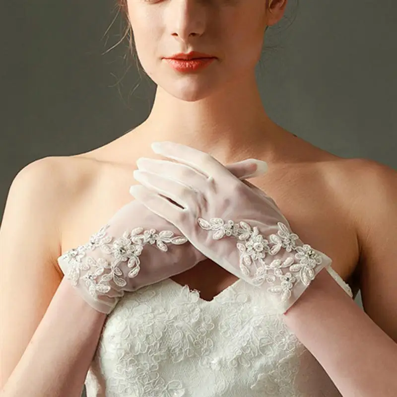 1 пара сшитые бисерные перчатки Красивые Простые Модные Цветочные перчатки свадебные перчатки Свадебный этикет перчатки для девочек
