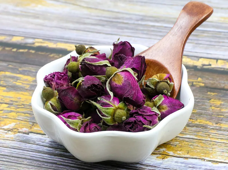 О розовом чае: Эта роза сделана из настоящих бутонов роз, выщипывается, когда они молоды, а затем высушиваются. Он обладает натуральным розовым вкусом и ароматом, что делает его прекрасным и очень приятным напитком. Эфирные масла в розовом бутоне могут помочь улучшить циркуляцию и хороши для сердца. Он предлагает цветочный аромат, легкий сладкий вкус и приводит к бледному пиву. Этот чай можно лучше оценить, если смешать с другими чаями.