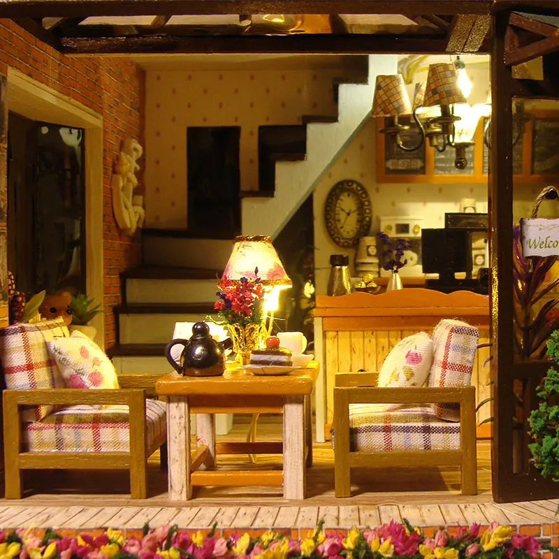 Миниатюрный Кукольный домик, мебель, украшение, головоломка, DIY, кукольный домик, Wodden Miniatura, кукольный домик, игрушки для детей, подарок, резьба по времени