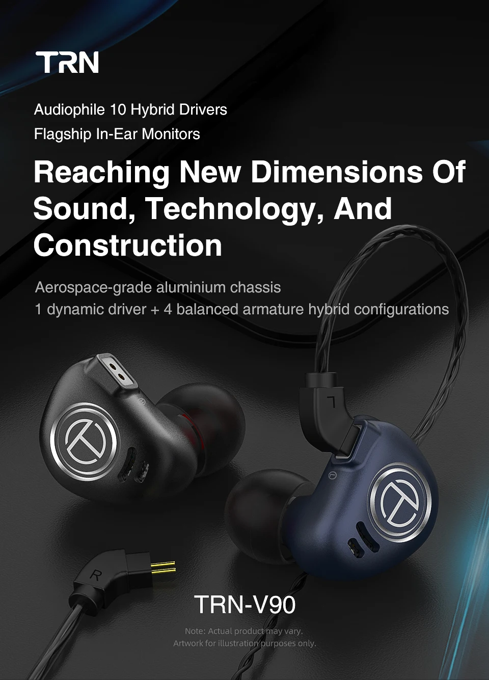 Этот флагманский монитор TRN V90 В Ухо использует 2 настроенных 30019 высокочастотных драйвера BA, что обеспечивает отличное определение и лучшее расширение, вокал выполнен более четким и ярким. 2. Настроенный 50060 драйвер средней частоты ba сделал звук полным и сладким, звуковая сцена более расширена. 10 мм Динамический драйвер достигает низких искажений.