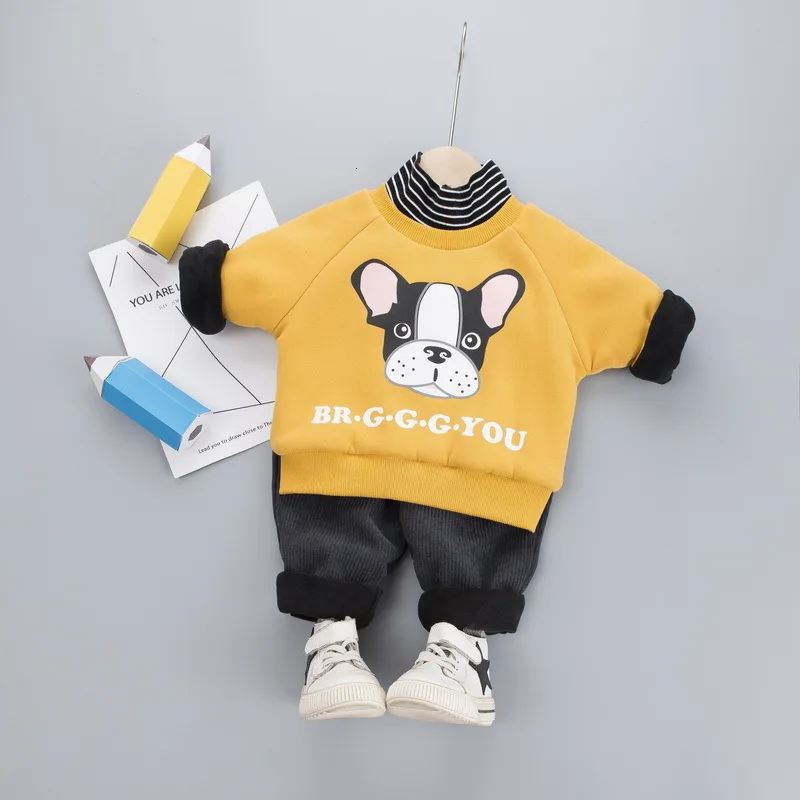 Новая зимняя одежда с рисунками для малышей, детский спортивный костюм для маленьких мальчиков и девочек, свитер с высоким воротом и бархатные штаны, 2 шт./компл., детская спортивная одежда для От 0 до 4 лет, 2019
