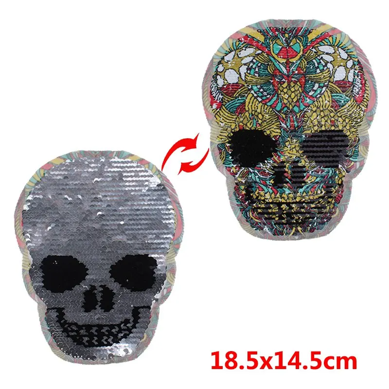 Prajna ретро череп Реверсивный блесток патчи пришить патчи для аппликация на одежду DIY нашивка в стиле панк для одежды полосы на куртки Минимальный заказ: 1 шт. Размер: как показано на картинке