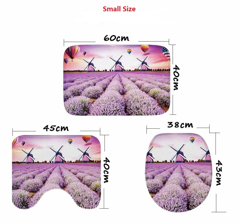 2. Размер: 3Шт. (включая большой размер:U-образный коврик 50x40 см, Прямоугольный коврик 80X50Крышка унитаза 35x45 см; Небольшой размер: U-Образный Коврик 45x40 см, Прямоугольный Коврик 60x40 см, крышка для унитаза38x43cm).