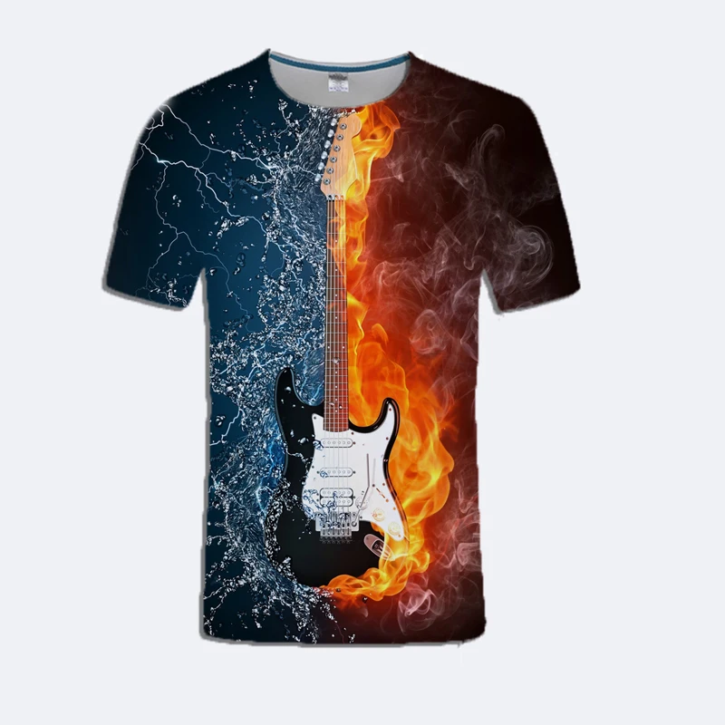 Рок унисекс пламя футболка музыкальная рубашка Забавные 3d гитары футболки Повседневная тяжелая металлическая Футболка с принтом короткий рукав мужская футболка оптовая продажа