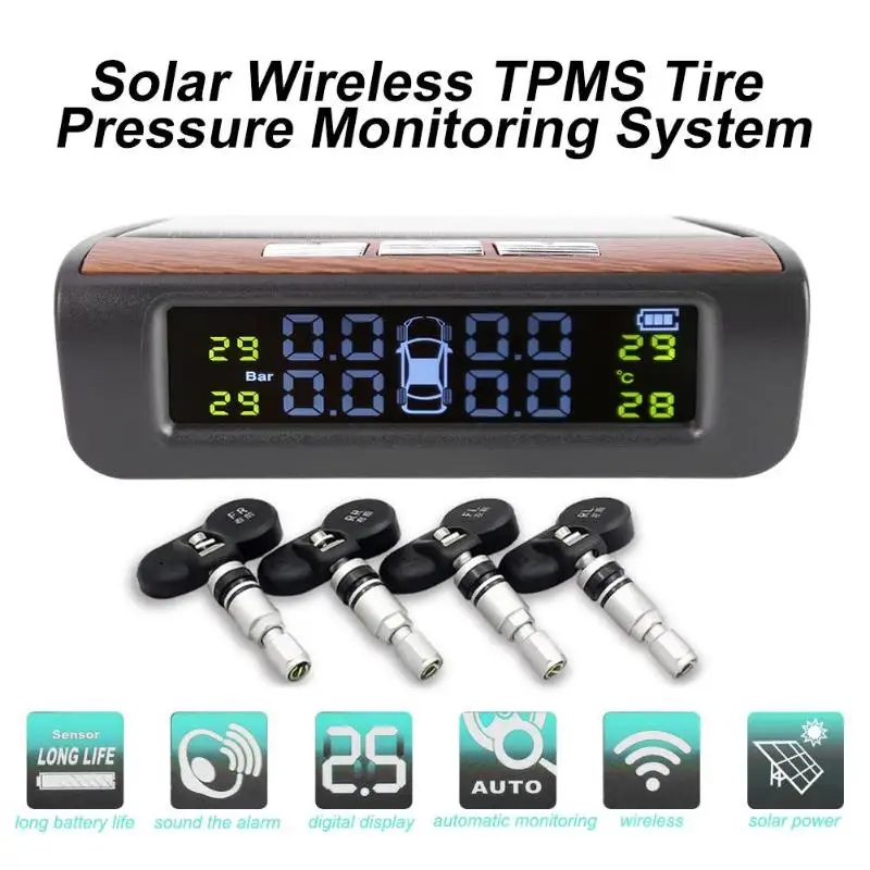 AN-06 SolarЖК-дисплей Дисплей АвтомобильСистема контроля давления в шинахАвтоСистема мониторинга давления в шинах, сигнализация температуры шин с 4 датчикамиОсобенности: 1. Высокоэффективная солнечная панель, Сверхдолгий срок службы; 2. Большая емкость встроенный металлический литиевая батарея; 3. Точный Мониторинг давления в шинах; 4. Жидкокристаллический ЖК-дисплей высокой точности; 5. Сигнал тревоги большого объема; 6. Различные давления в шинах единиц доступны; 7. Дальность приема и стабильный сигнал; 8. Изменение положения шин. Технические характеристики: Тип датчика: внутренний/внешний Давление воздуха Диапазон регулировки: 0,1 ~ 6.0BA Диапазон регулировки температуры: 40 ~ 68 ° C Рабочая температура: -20 ~ + 80 °C Температура хранения: -30 ~ + 85 ° C Напряжение питания: 5 в пост. Тока Частота: 433,92 МГц ± 20,00 МГц Размер продукта: 84*66*30 мм/3,31*2,60*1,18" Вес нетто: 68 г Общий вес: 220 г (внешний)/ 320 г (внутренний) Примечания: 1. Возможны незначительные отклонения в размере из-за ручного измерения, различных способа измерения и инструментов. 2. Изображение может не отображать фактический цвет товара из-за различного фотографического светильник, угол и монитор экрана.