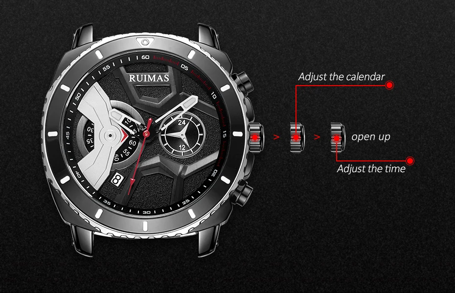 Бренд: Ruimas Застежка: Пряжка Вес часов: 85 г Часовой механизм: кварцевый механизм Толщина корпуса: 14 мм Материал корпуса: сплав Диаметр корпуса: 44 мм Материал ремешка: силиконовый ремешок Длина ремешка: 220 мм Ширина ремешка: 22 мм