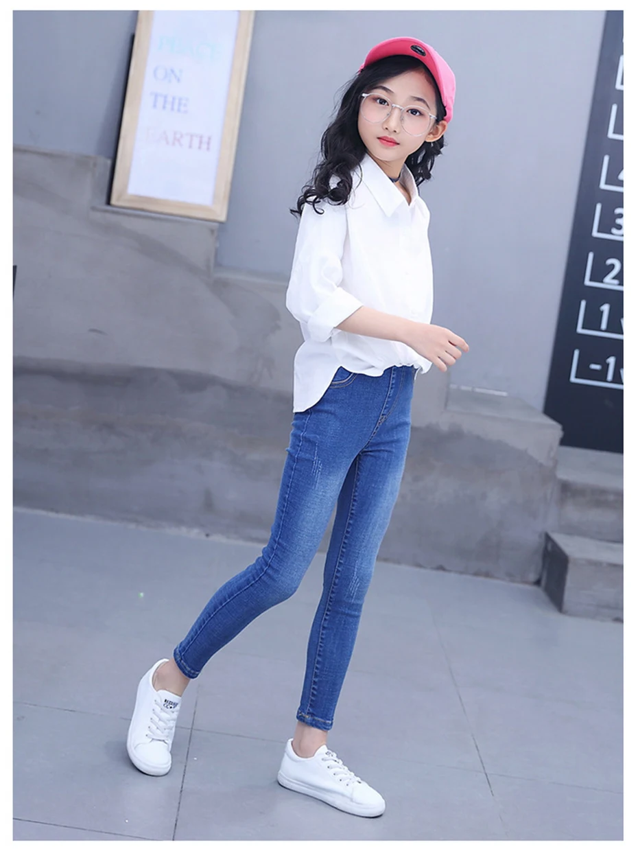 Джинсы для девочек длинные штаны детей свободные рваные джинсы с дырками