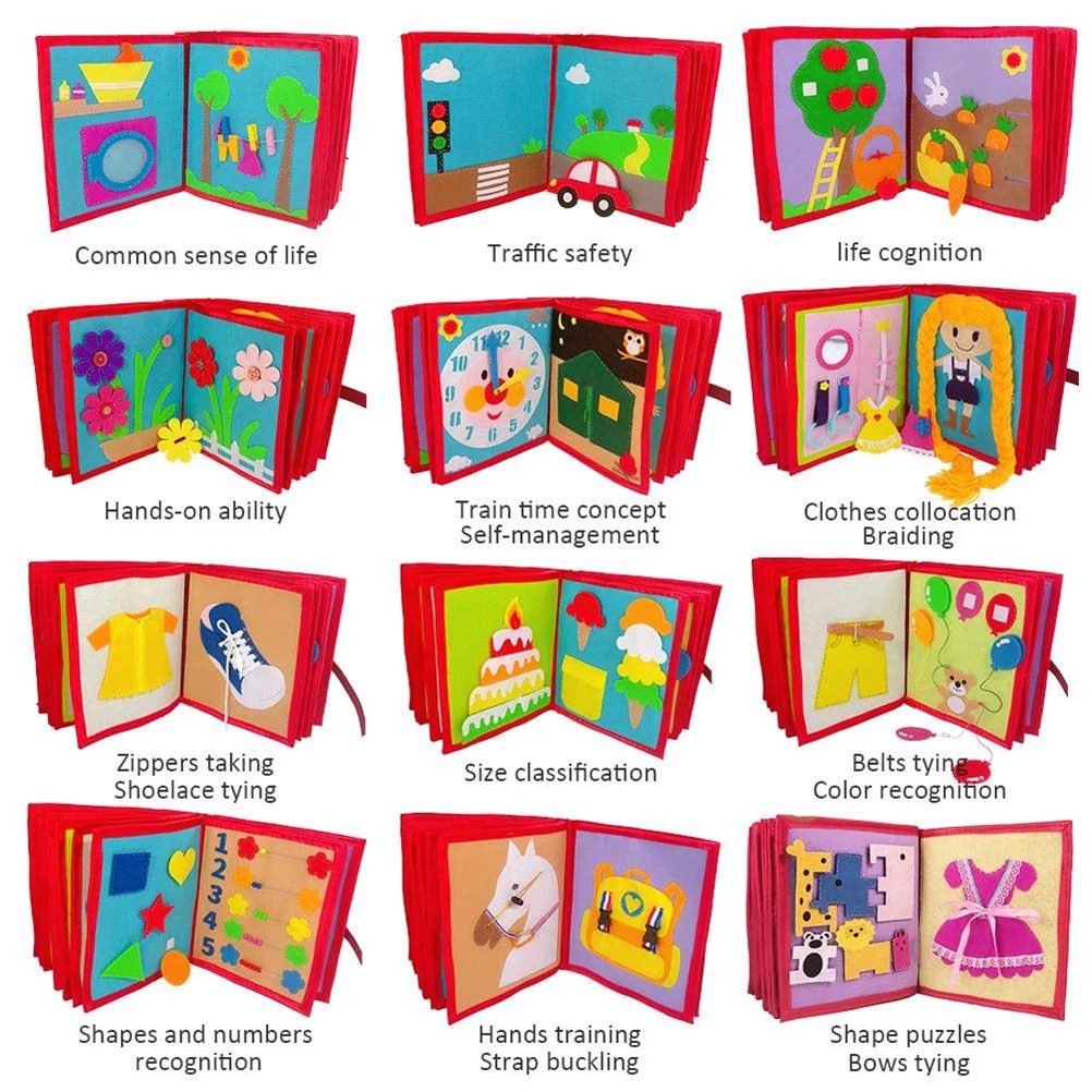 Это игрушка для раннего развития: прекрасный способ стимуляции важных ключевых навыков, таких как языковые и читающие навыки, коммуникационные навыки, воображение, сенсорные навыки, распознавание формы и количества, тренировка рук, сгибание плечевого ремня, головоломка формы, галстук-бабочка.