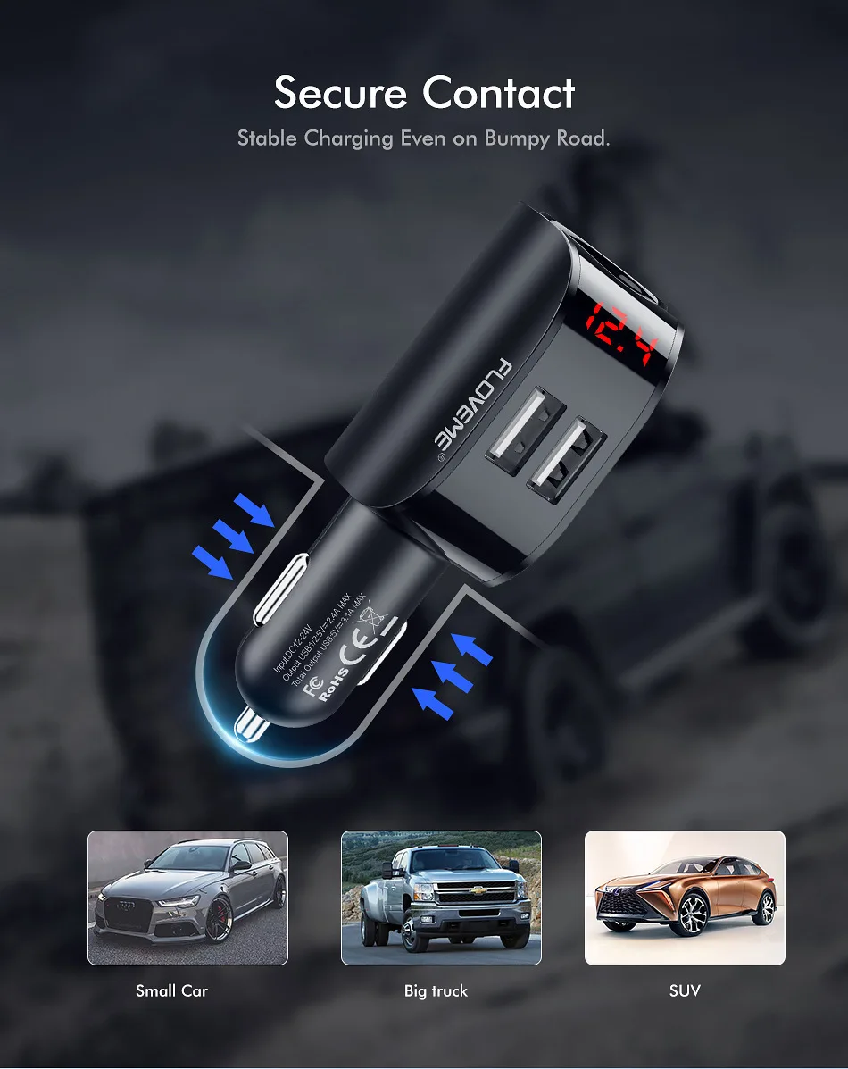 ★【Беспроводная конструкция и компактный дизайн 】подключите этот автомобильный адаптер к прикуривателю автомобиля без дополнительных проводов. все в одном дизайне с гибким вращением, делает ваш автомобиль кратер, приносит вам больше удобства деятельности в автомобиле.