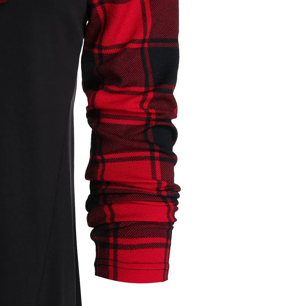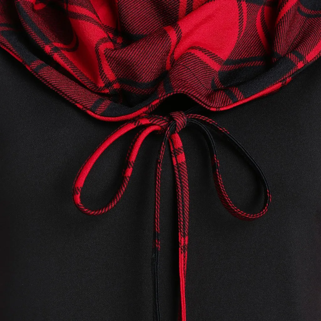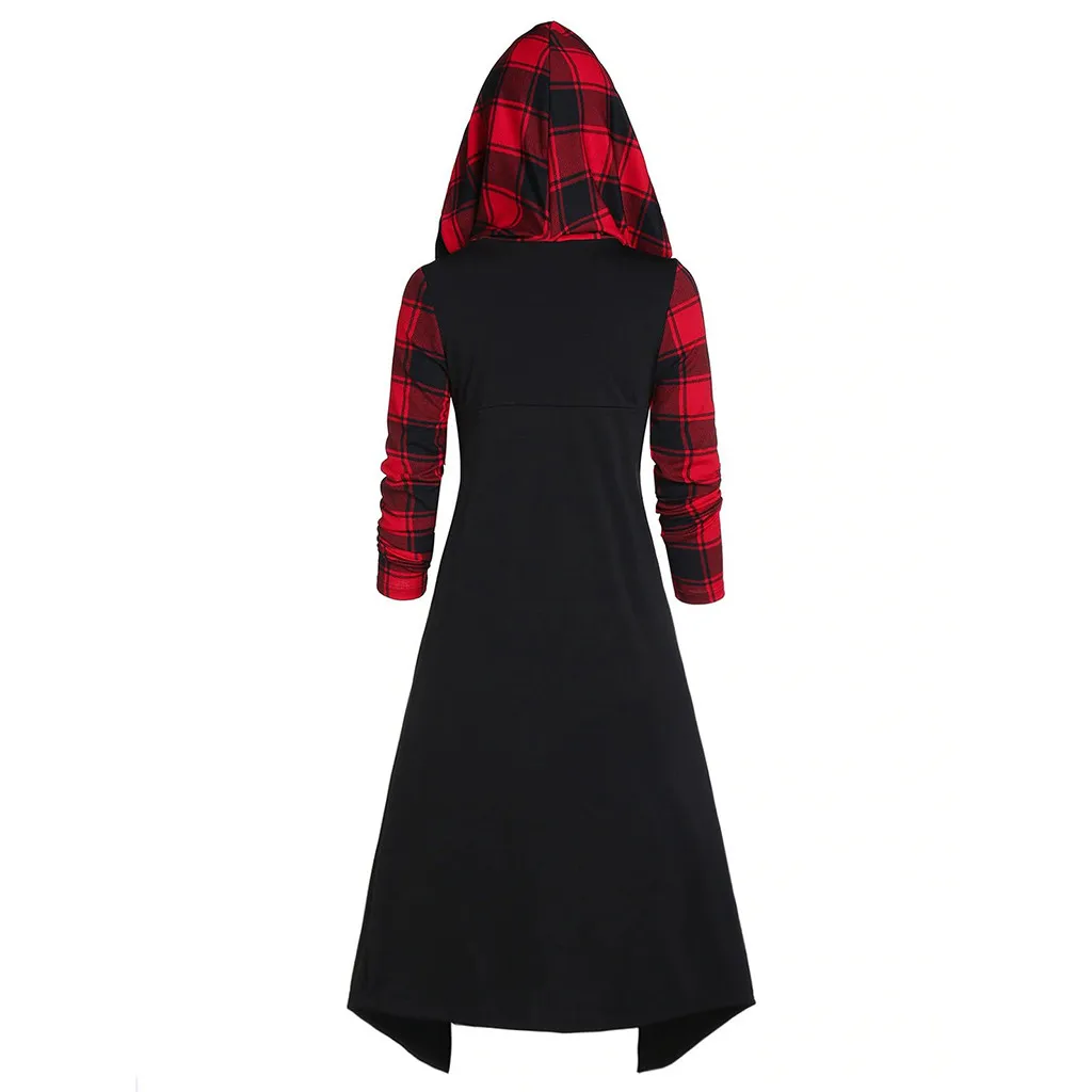 Женское клетчатое платье средней длины с капюшоном и длинным рукавом