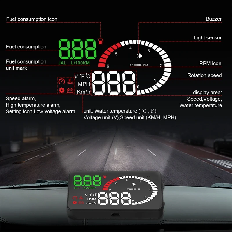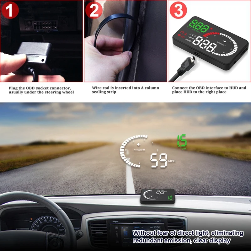 Спасибо за покупку нашего HUD. Этот продукт предназначен для безопасности водителей, особенно в высокоскоростном вождении ночью, HUD может держать водителя в глаза на дороге и может уменьшить автомобильную аварию. HUD может проецировать важную информацию (например, скорость) на лобовое стекло, это может помочь неопытному новичку контролировать свою скорость и избежать нарушения скорости в скоростной дороге.