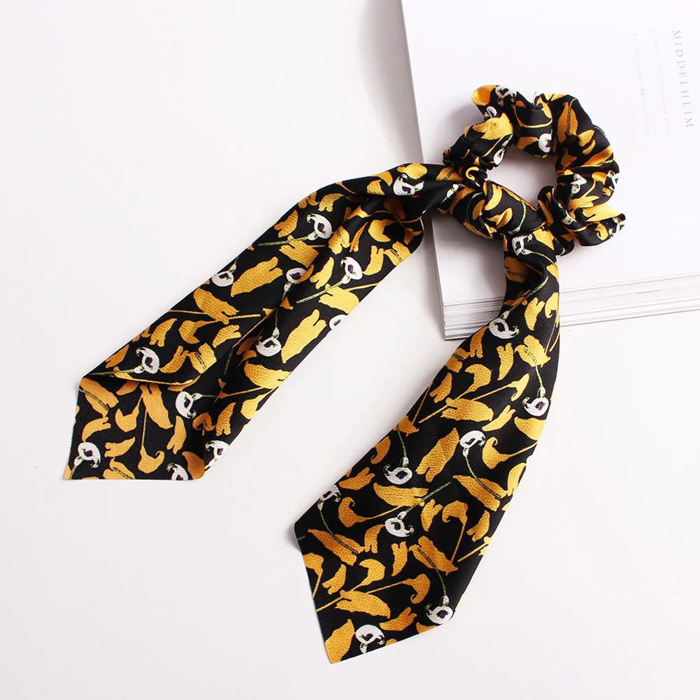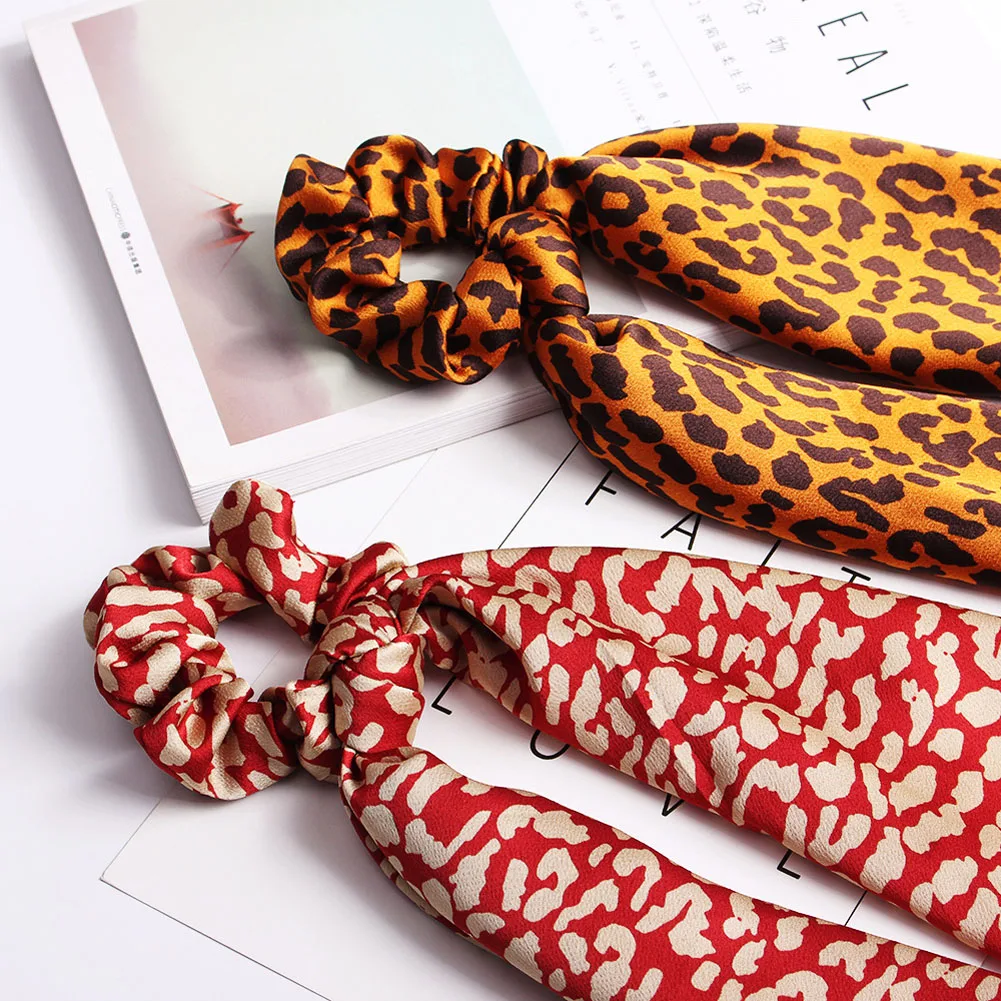 Цветочный Леопардовый резной шарф для волос эластичная резинка для волос в стиле бохо с бантом