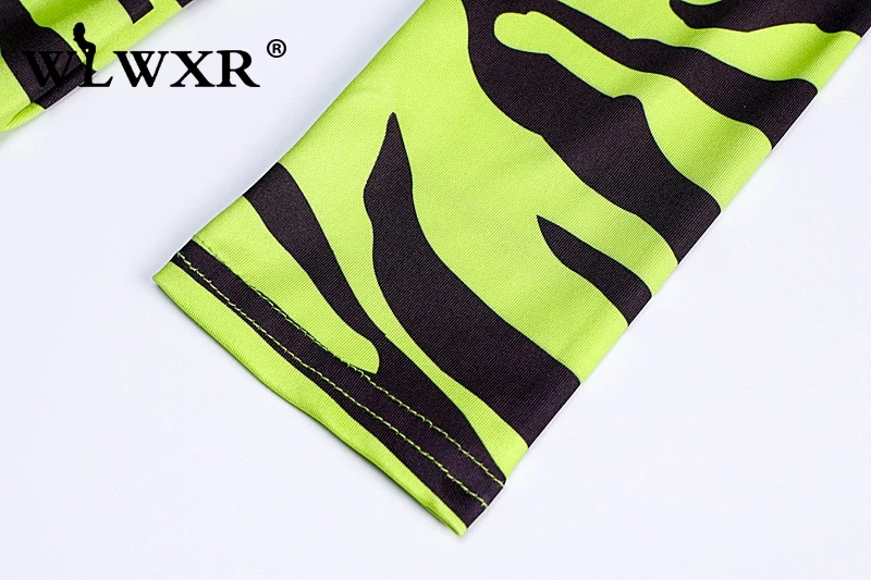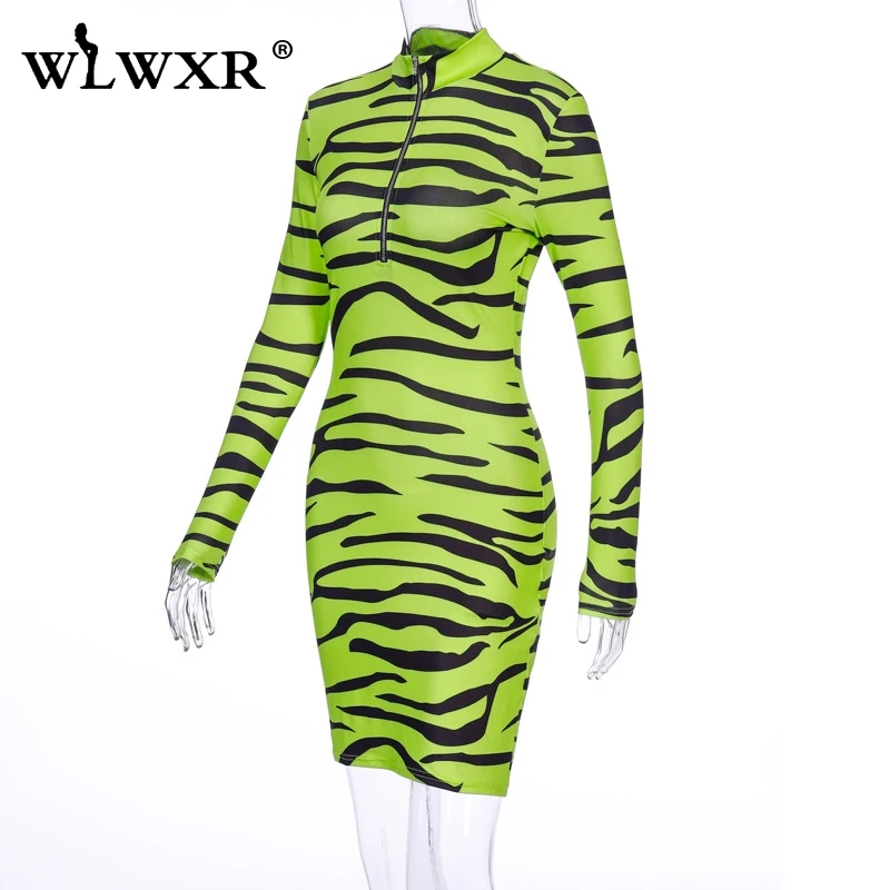 WLWXR с тигровым принтом, сексуальное облегающее платье Для женщин с длинным рукавом Обёрточная бумага Мини-платья Зауженные Брюки Для больших девочек зеленого цвета для ночного клуба вечерние короткие женская одежда