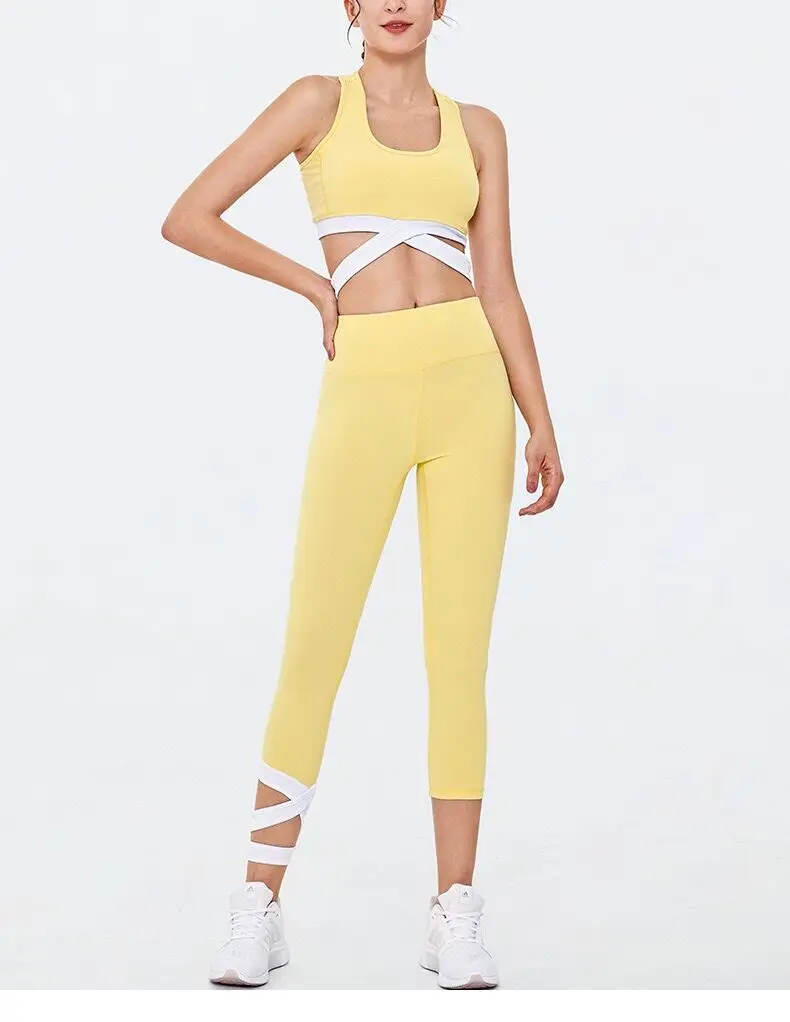 2 шт., набор для йоги, желтая спортивная одежда, женский спортивный костюм, для бега, ударопрочный бюстгальтер, для занятий спортом, для фитнеса, танцев, одежда для тренировок, сексуальная одежда
