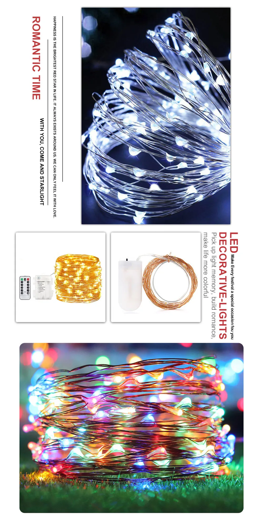 Светодиодная гирлянда с дистанционным управлением 10 м 100 светодиодов | Лампы и