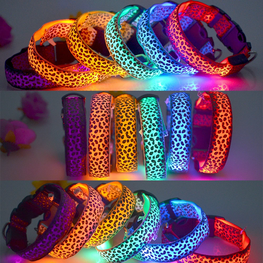 Ошейник для собак с леопардосветодиодный сунком Нейлоновый Регулируемый