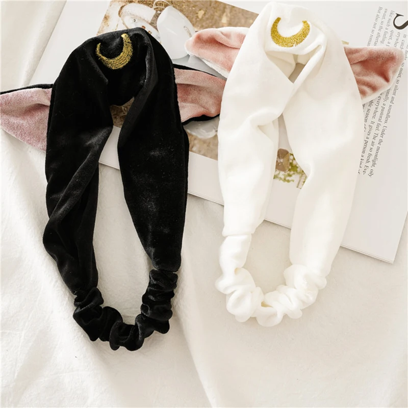 Мультяшная Луна кошачьи ушки, мягкая эластичная повязка на голову для мытья лица, косметическая лента для волос при занятиях йогой