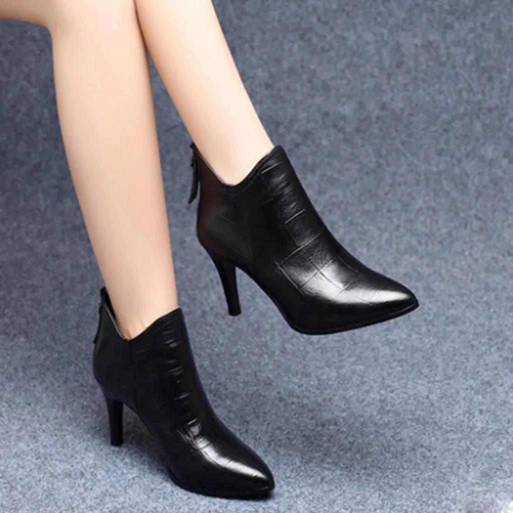 Женские ботинки на молнии сзади; ботильоны на шпильке; повседневные ботинки с острым носком