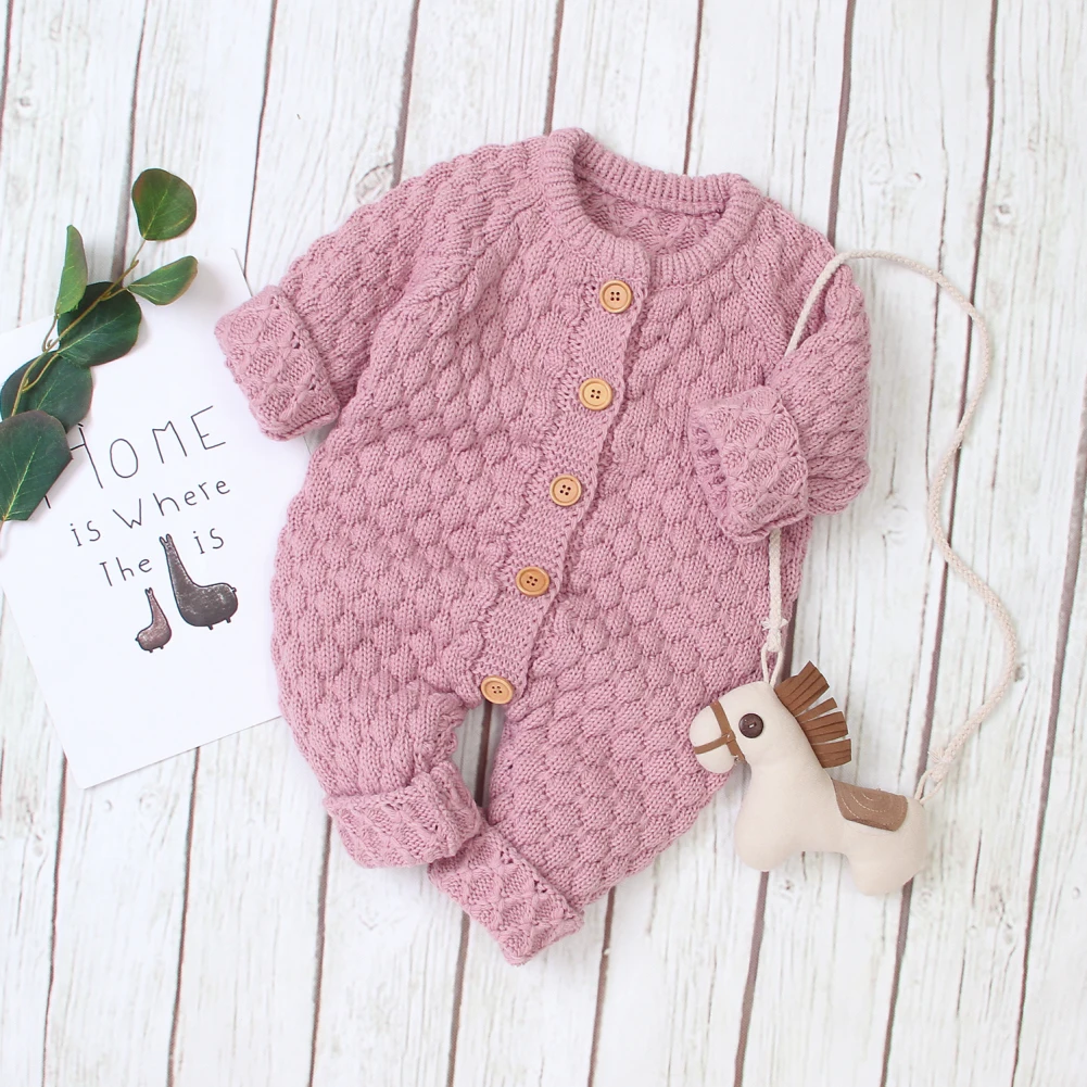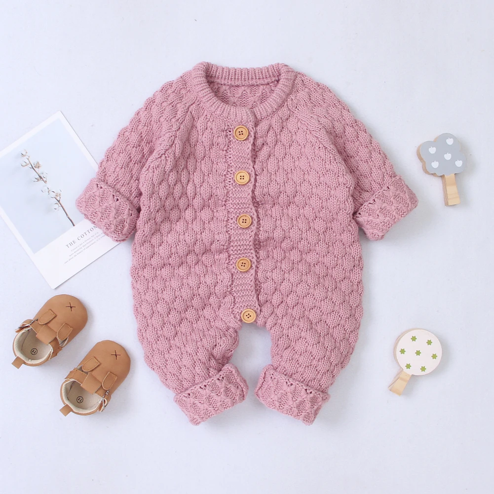 Теплая одежда для маленьких мальчиков и девочек осенне-зимний шерстяной свитер с длинными рукавами детский комбинезон, однотонный длинный комбинезон, комбинезон, комплект одежды ~!